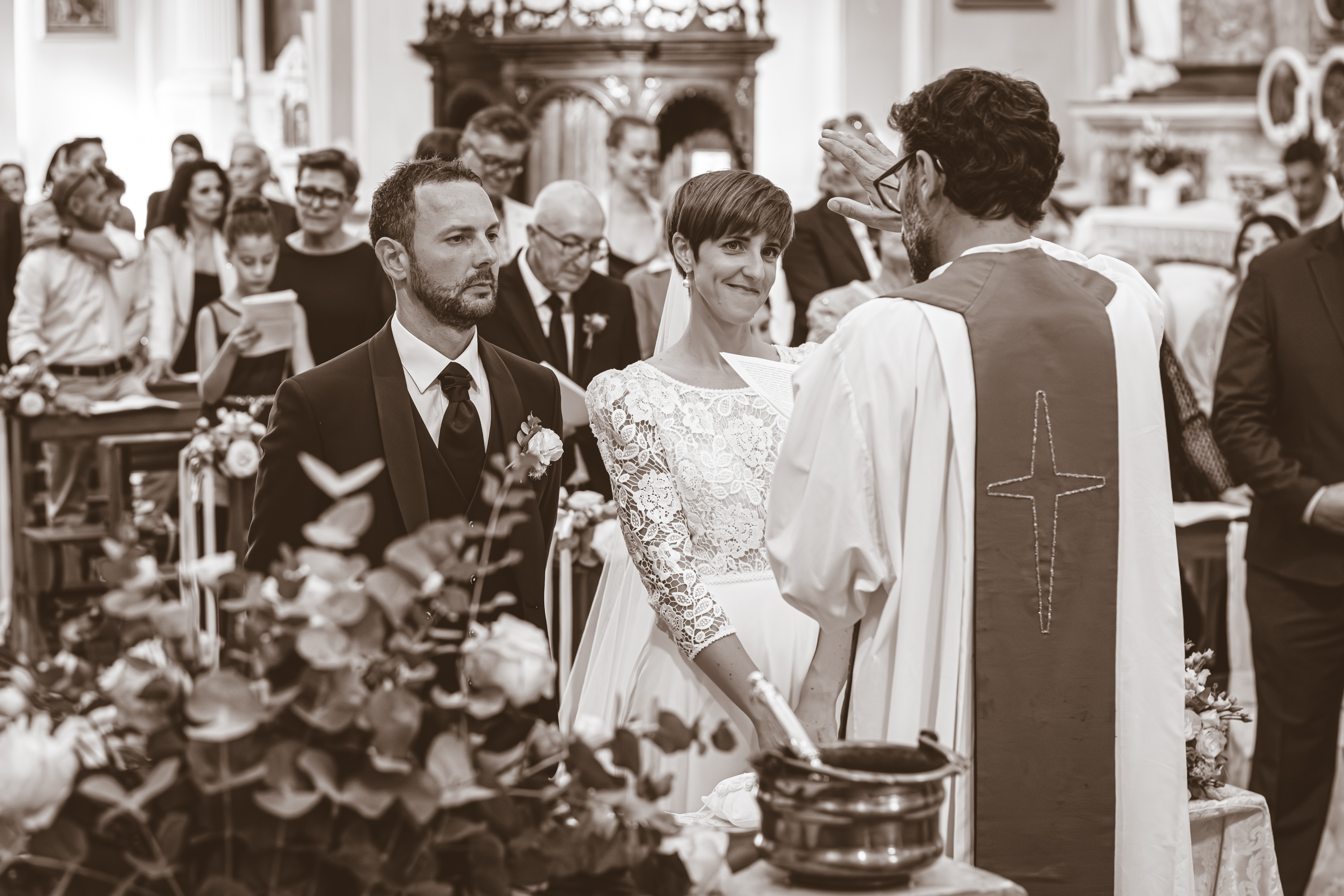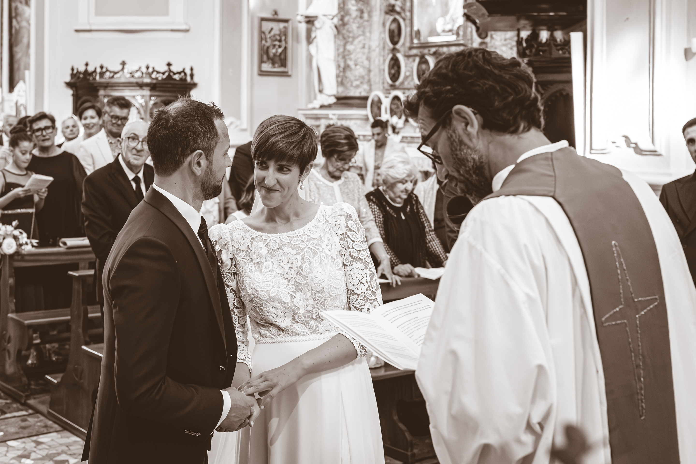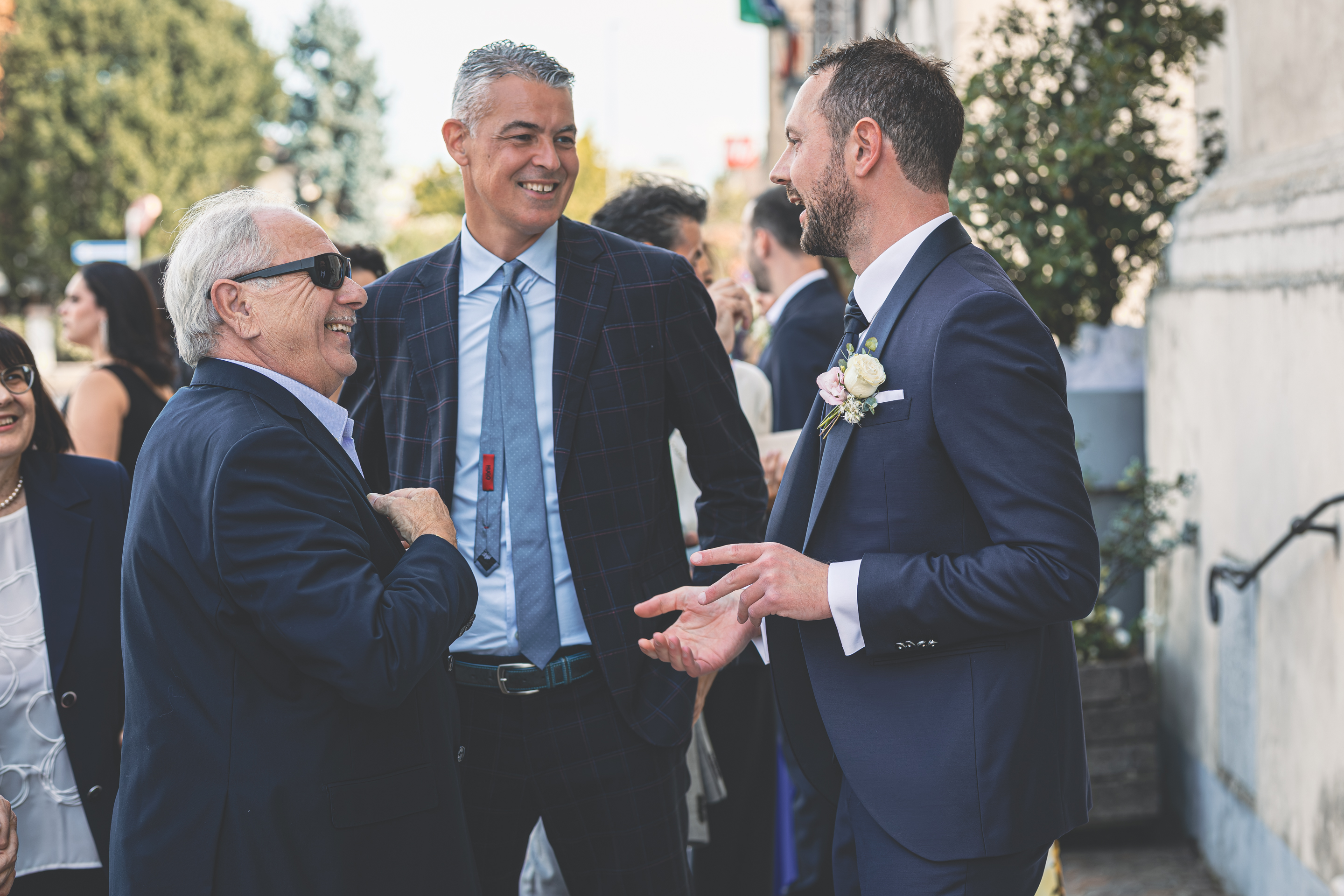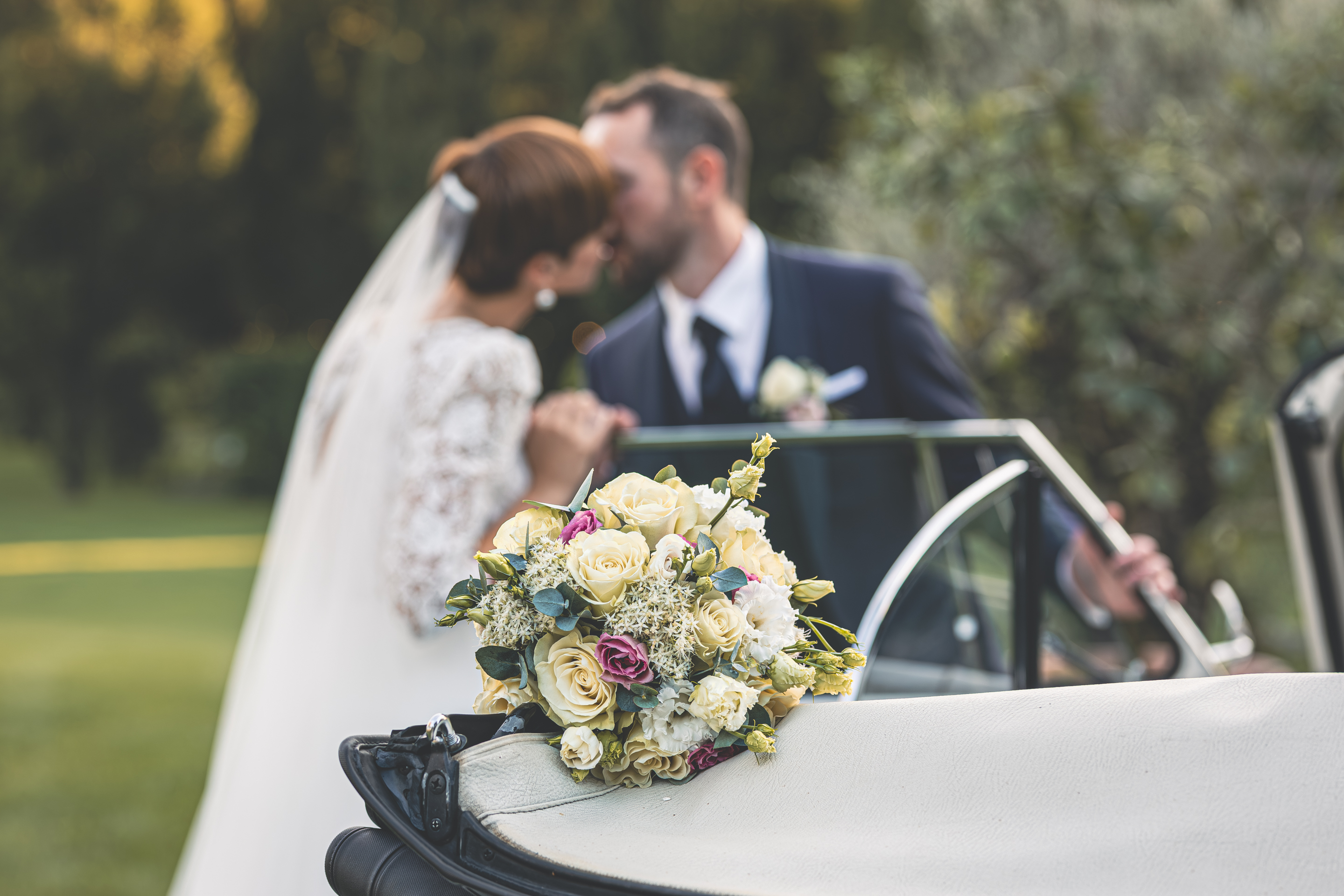 Nel frattempo raggiungo Davide all’esterno della Chiesa, elegantemente allestita da Mondo in Fiore, mentre accoglie i primi ospiti. La cerimonia religiosa è accompagnata dai canti di Simone Ghidetti, creando un’atmosfera raccolta e partecipata. All’uscita, riso, sorrisi e abbracci festeggiano il sì di Erica e Davide. Gli Sposi partono poi a bordo dello splendido maggiolone di Maggiolone per Matrimoni, direzione Corte Francesco. All’arrivo, mentre gli invitati si godono aperitivo e musica con DJ Rocky, ci ritagliamo un momento tutto per loro nel parco della Corte, tra sguardi complici e gesti spontanei.