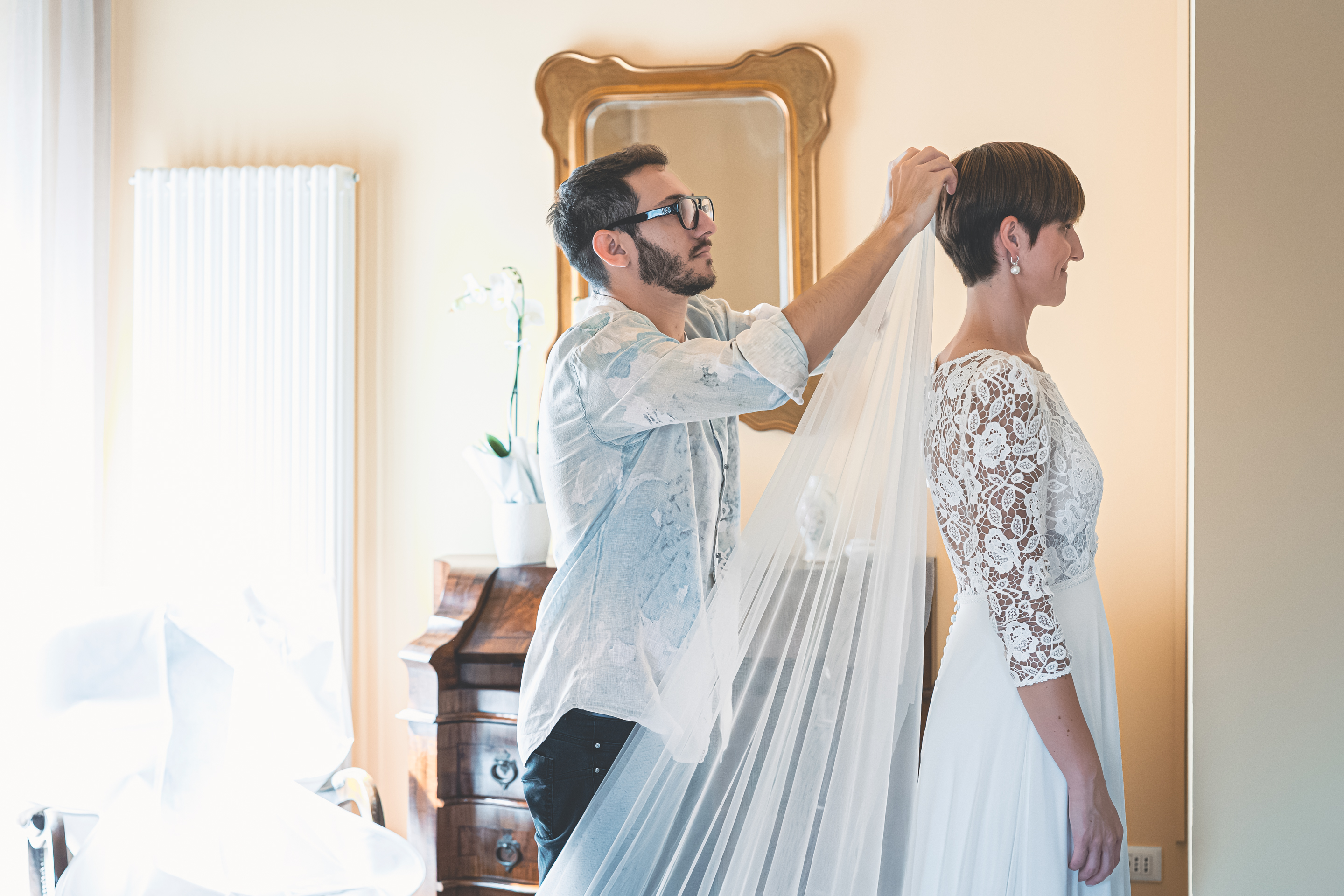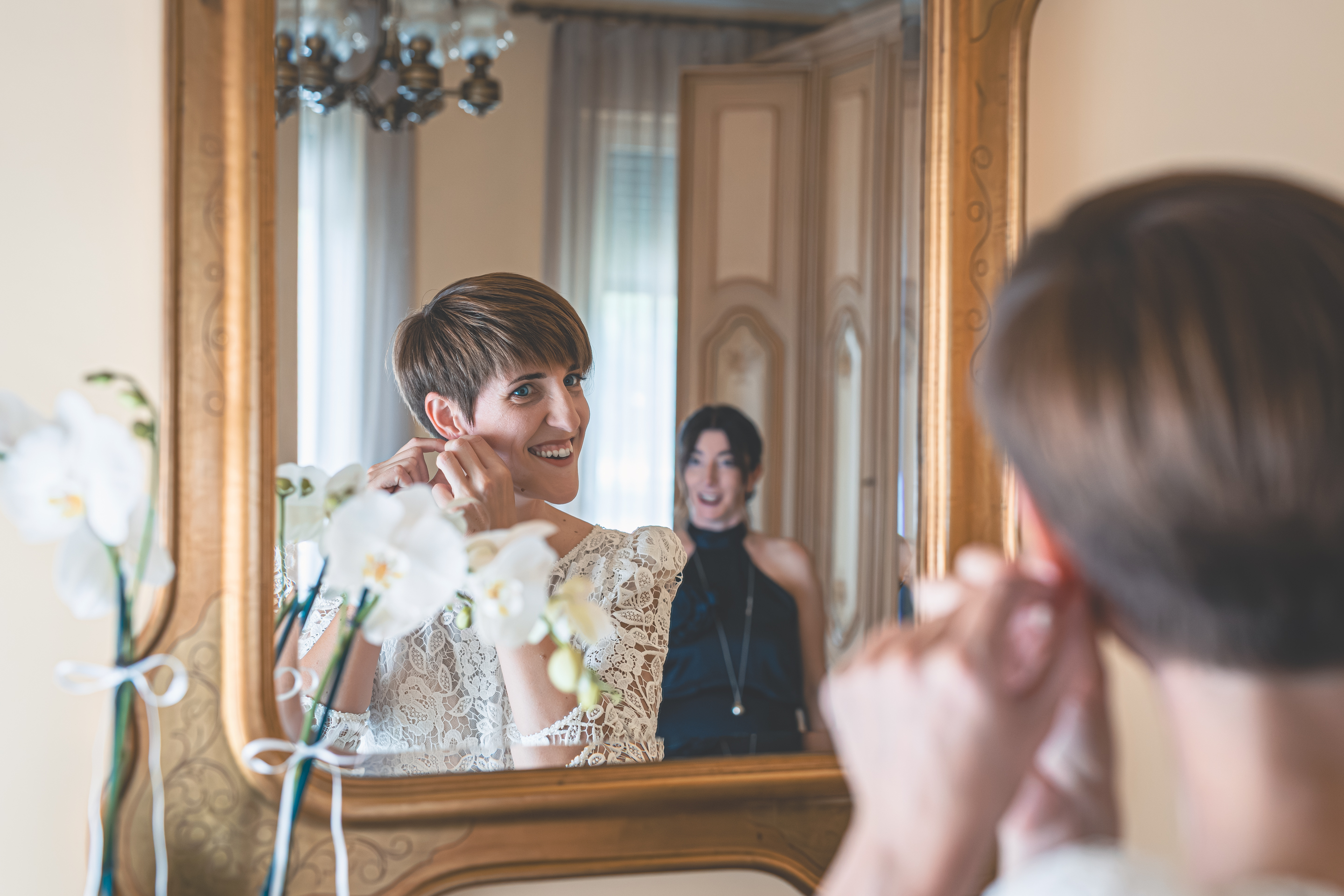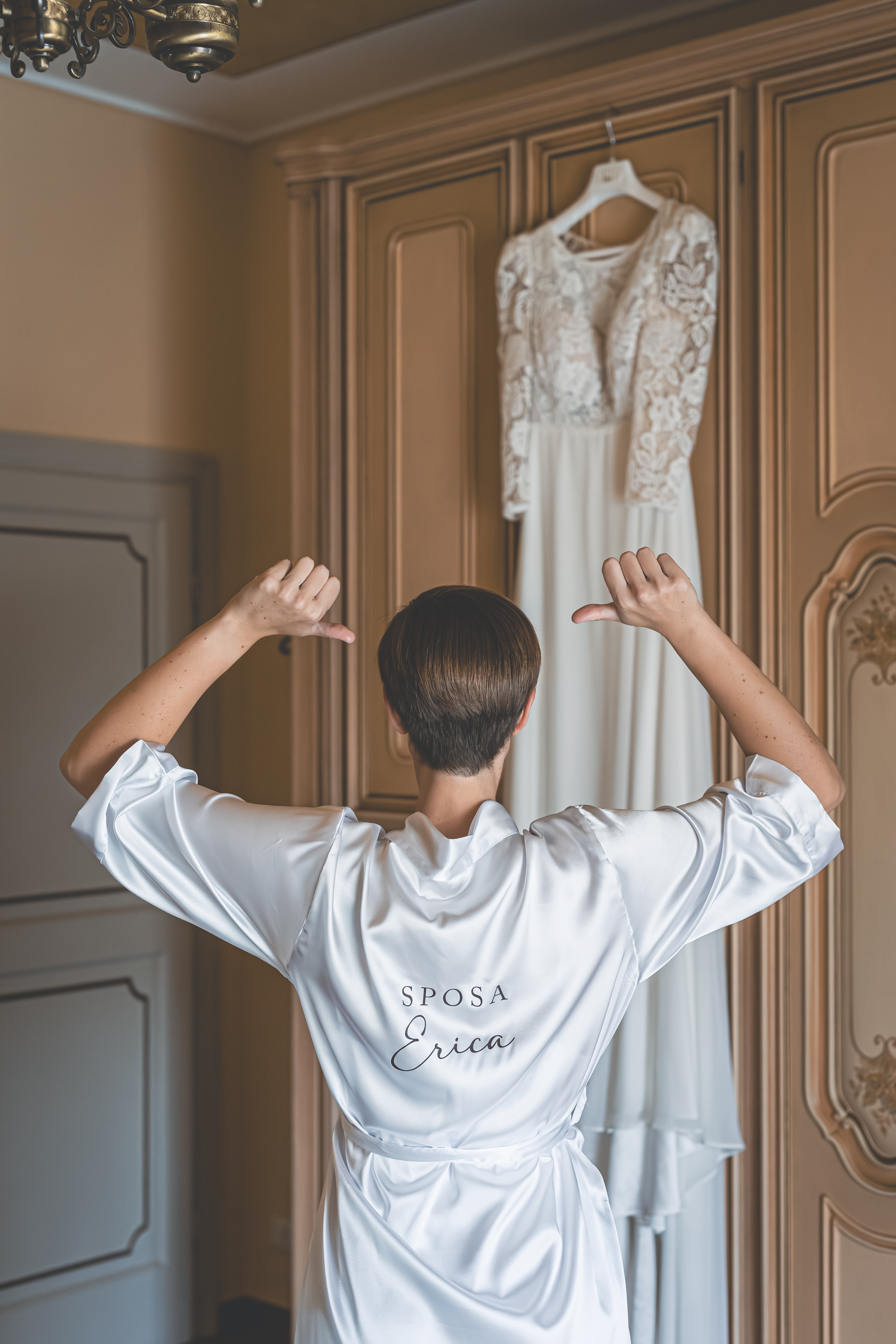 Erica e Davide chiudono un intenso weekend di matrimoni di metà settembre con una giornata ricca di emozioni autentiche e momenti condivisi senza fretta. I preparativi iniziano a casa dei genitori di Erica, in provincia di Mantova. Dopo trucco e parrucco curati da Non Solo Lady, Erica indossa l’abito firmato Atelier Pier Sposi. Il momento più intenso arriva subito dopo: il primo abbraccio da Sposa con il papà e con due fratelli visibilmente emozionati, prima di salutare gli invitati per la tradizionale tavola bianca.