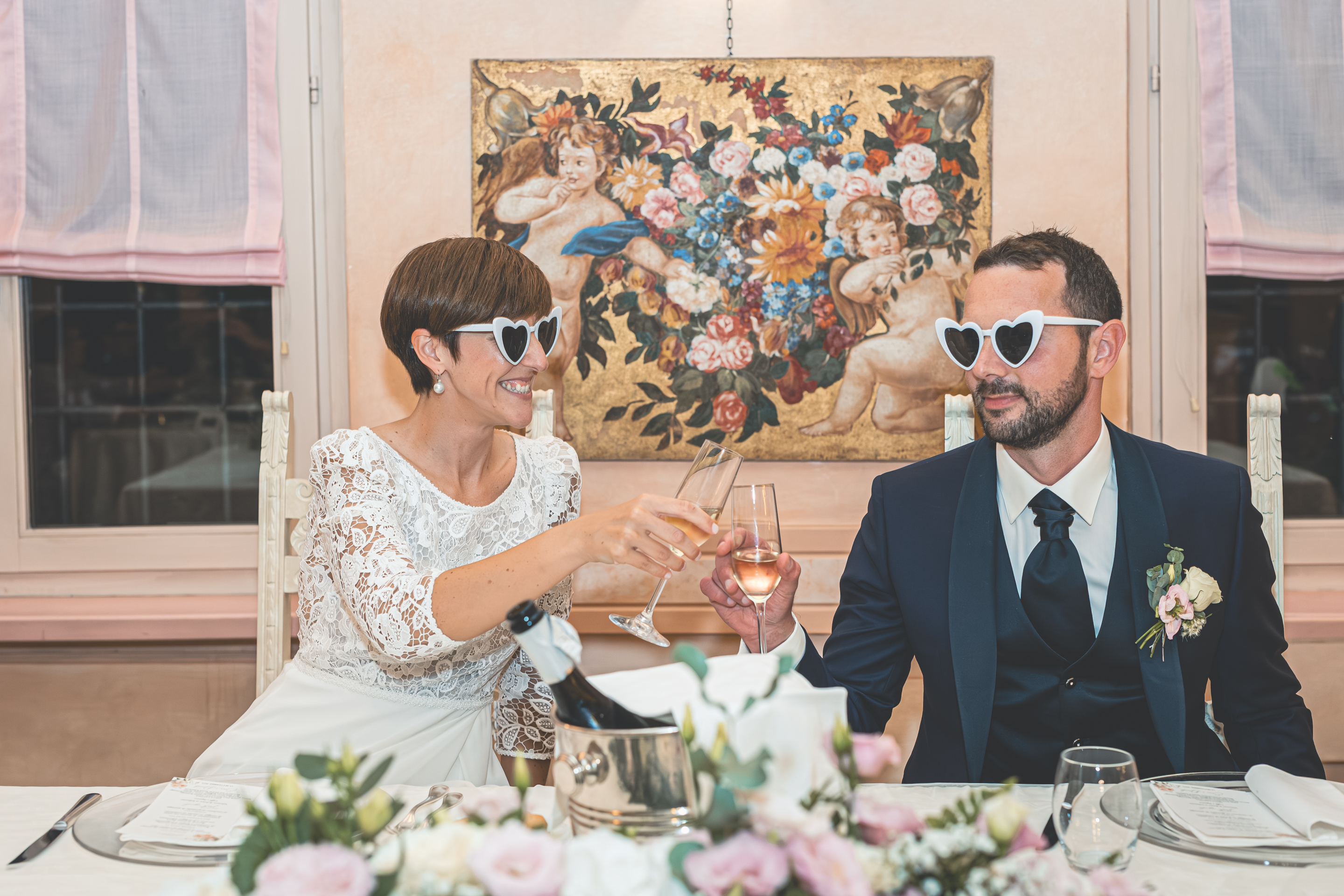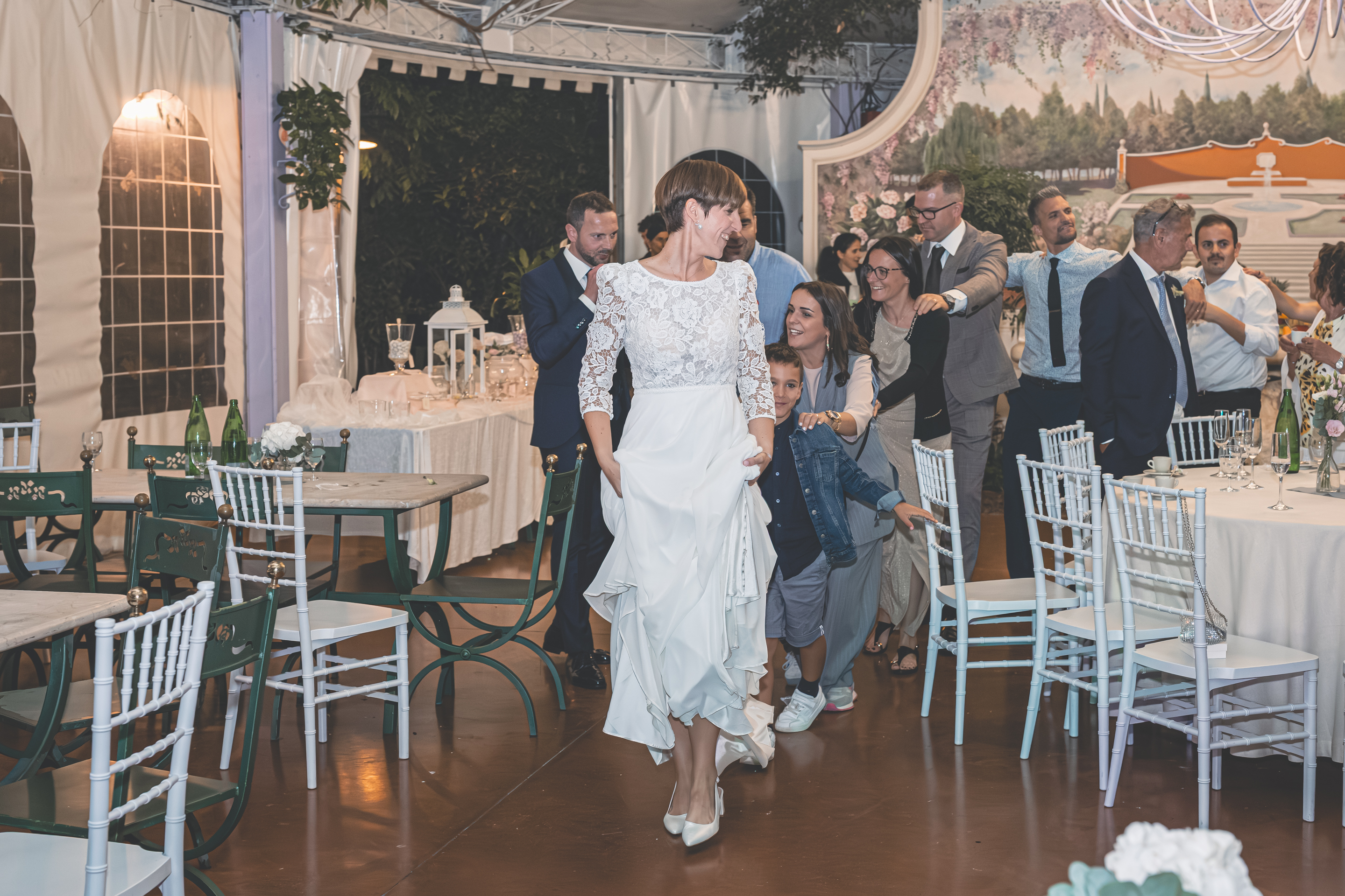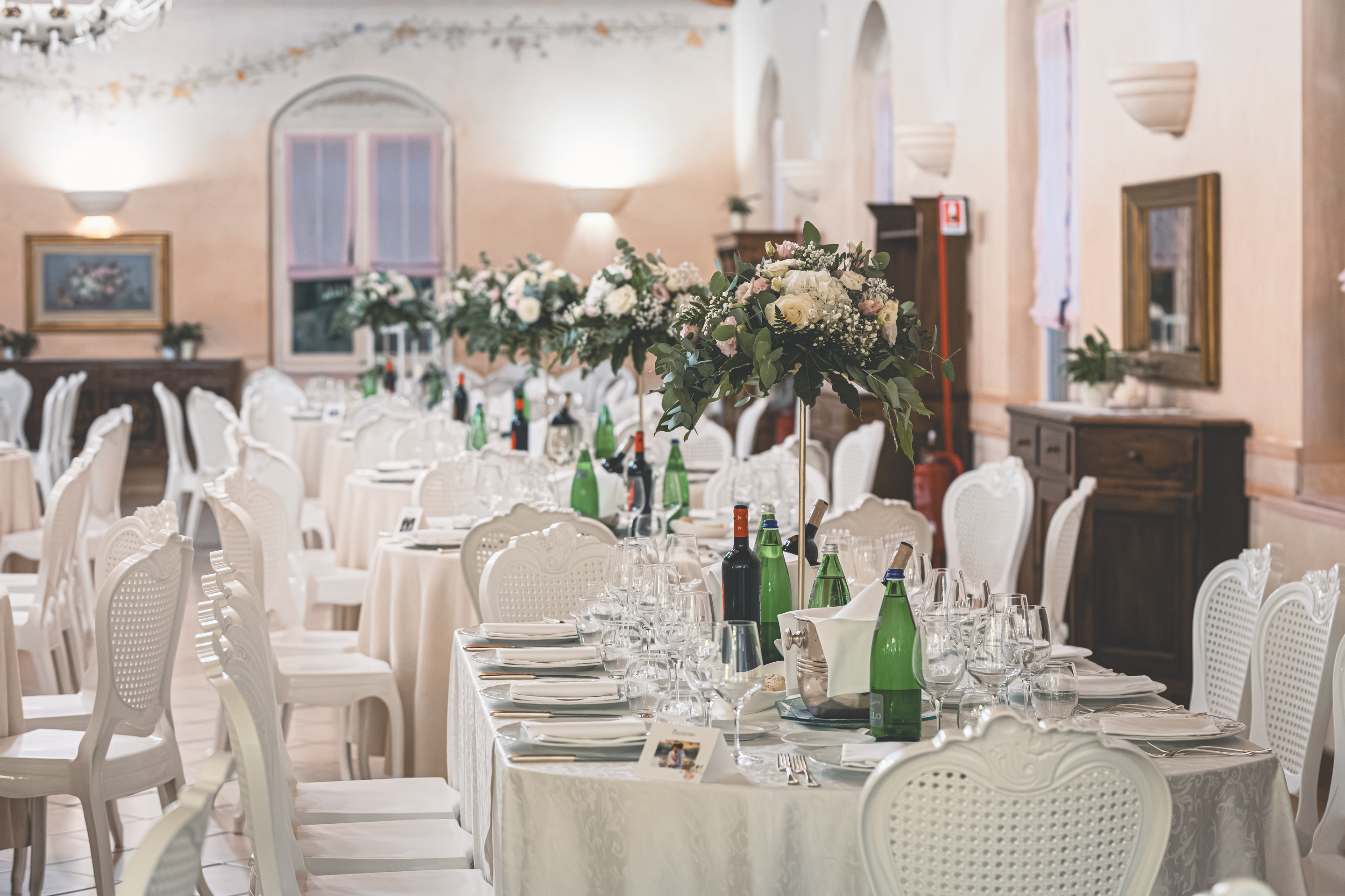 La cena si svolge all’interno, in una sala elegantemente allestita da Ambient Design Floreale, per poi tornare all’aperto per il taglio della torta. Prima del rientro, il lancio del bouquet anticipa il momento dei dolci e la consegna delle bomboniere di La Lumy. La giornata si conclude con musica e balli, chiudendo nel migliore dei modi un weekend intenso e ricco di storie da raccontare.