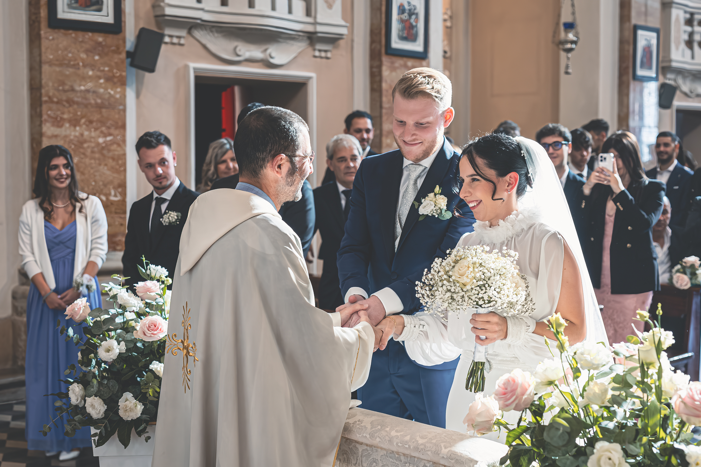 Francesca e Alessandro si sposano a metà ottobre, in una bella giornata di sole, per un matrimonio che si muove tra Mantova e Brescia, accompagnando gli invitati – e anche me – lungo una giornata piena di emozioni, sorrisi e voglia di stare insieme. Inizio con i preparativi a casa di Francesca, in provincia di Mantova, dove la Sposa si fa trovare già pronta con trucco firmato Beauty Moment e acconciatura a cura di Lory Style. È il momento di indossare l’abito di Sposi Domani, aiutata dalla mamma e dalle testimoni, prima di incontrare il papà per un abbraccio carico di emozione. Mi sposto poi da Alessandro, sistemato nel taglio da Un Diavolo per Capello, mentre si prepara con l’aiuto dei testimoni e del resto della famiglia. Anche per lui un abito firmato Sposi Domani, in un clima di attesa che cresce minuto dopo minuto.