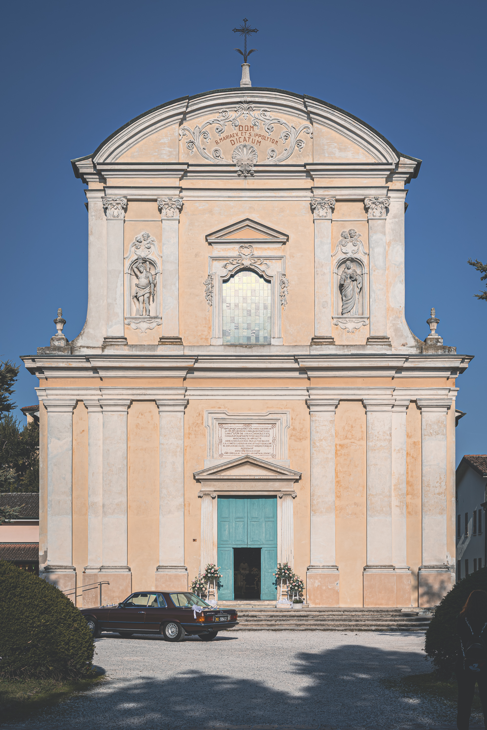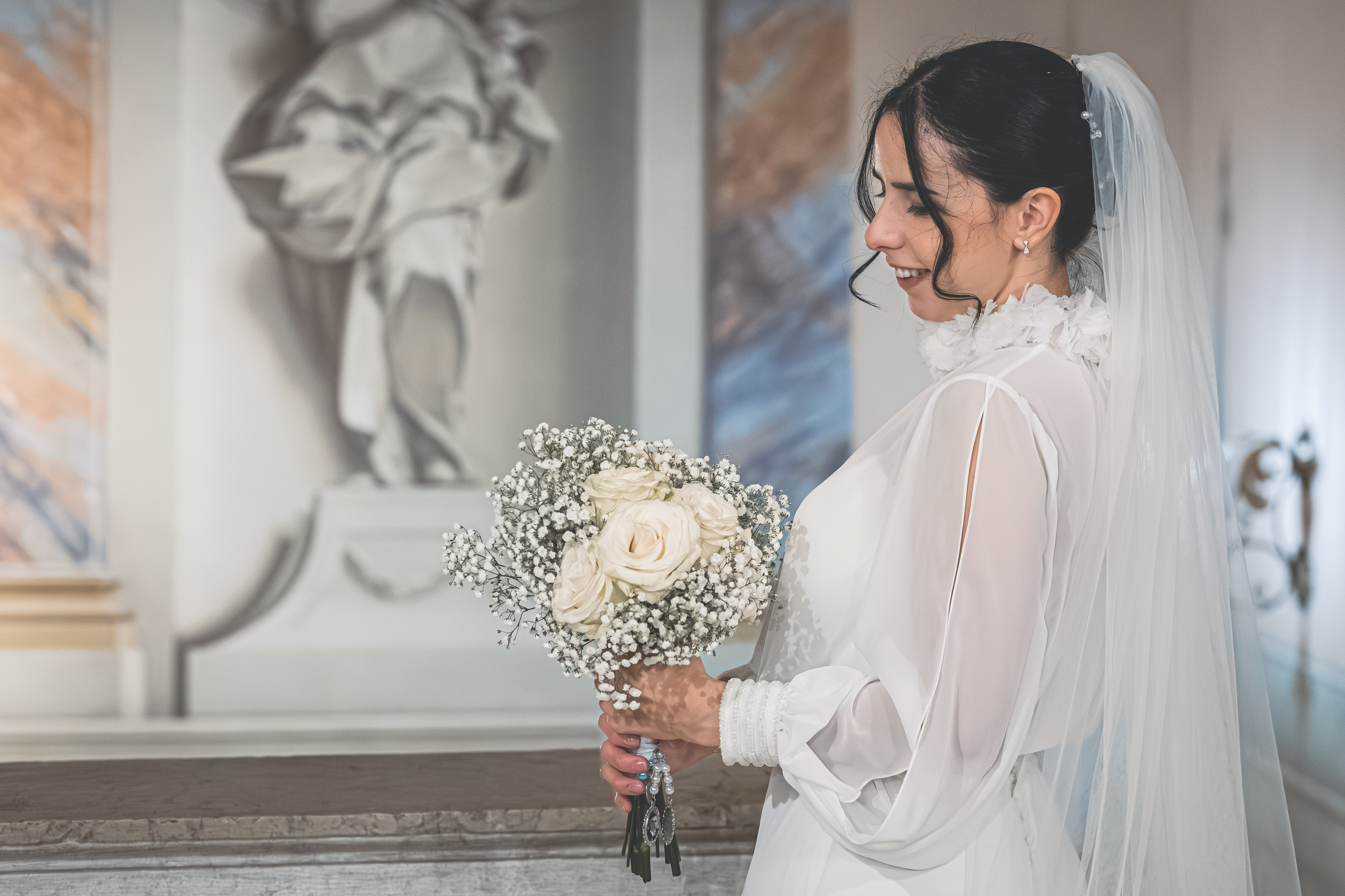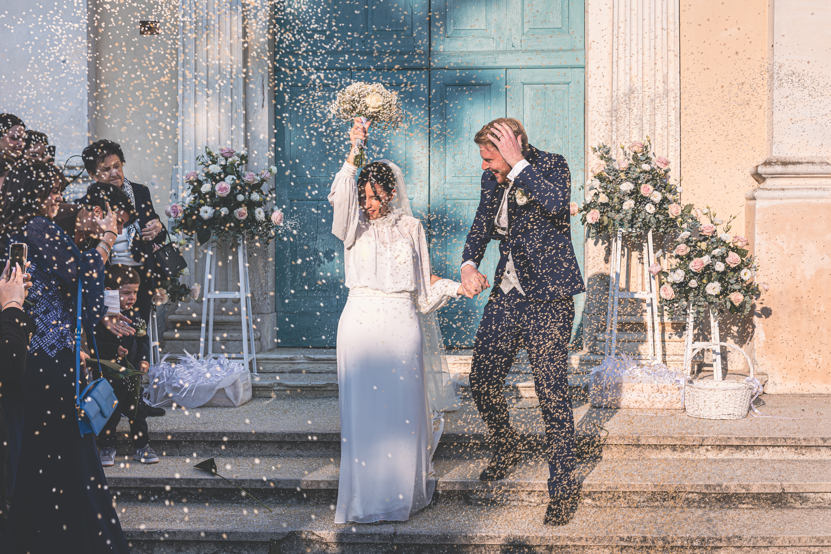 Per il rito ci spostiamo in Chiesa, allestita da Mondo in Fiore. La cerimonia scorre intensa e partecipata, fino all’uscita, quando i consueti baci e abbracci aiutano a sciogliere tensione ed emozioni, lasciando spazio ai sorrisi e alla leggerezza. Da lì ci dirigiamo verso Brescia, nella cornice di Villa Fenaroli. Il sole purtroppo sta già calando e non ci permette di sfruttare fino in fondo tutti gli spazi esterni della location, ma basta davvero poco per trovare comunque l’atmosfera giusta. Appena aperto l’aperitivo, con Francesca e Alessandro ci ritagliamo qualche scatto di complicità, alternando gli ambienti interni ed esterni della Villa, per raccontare con semplicità e naturalezza il loro modo di stare insieme.