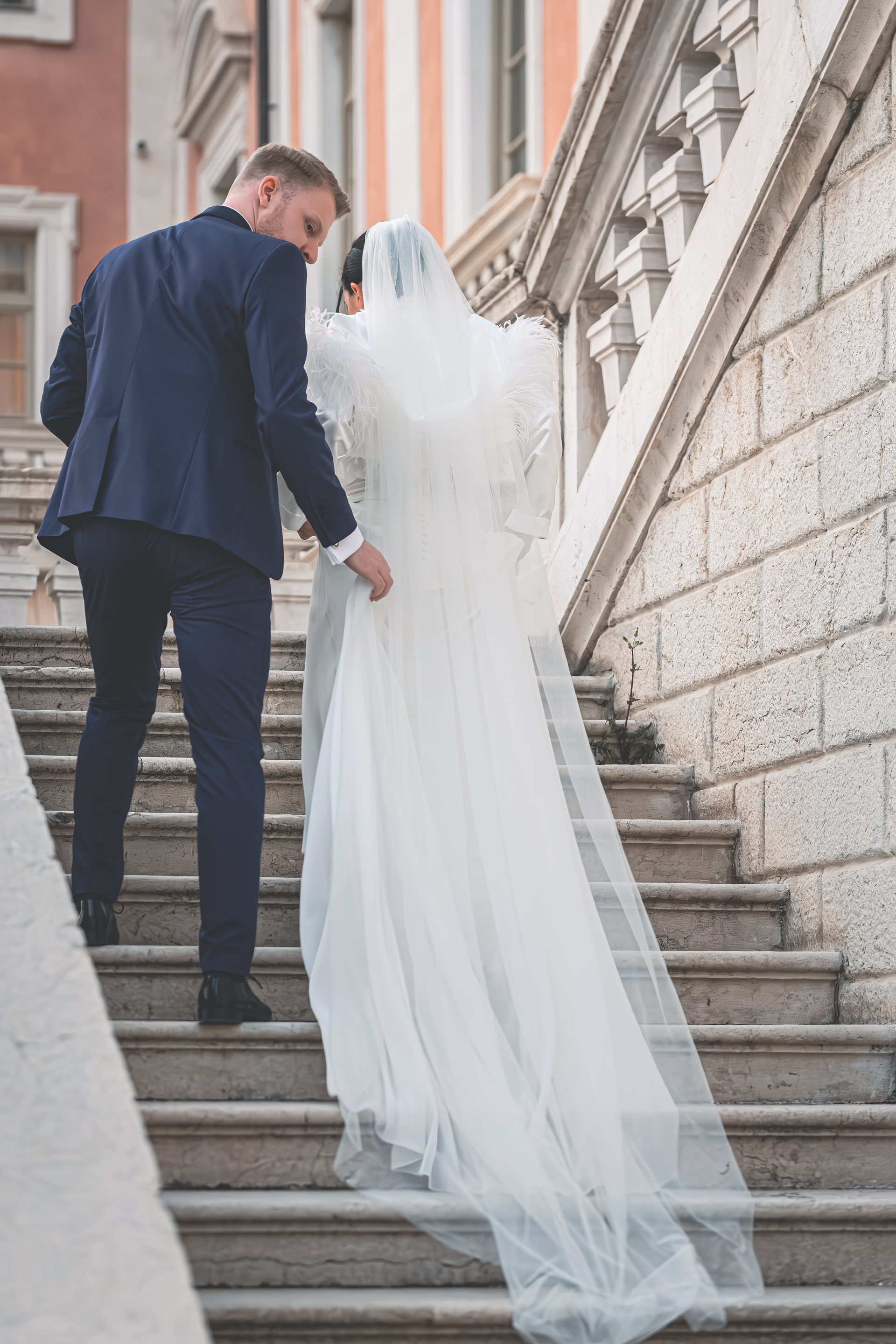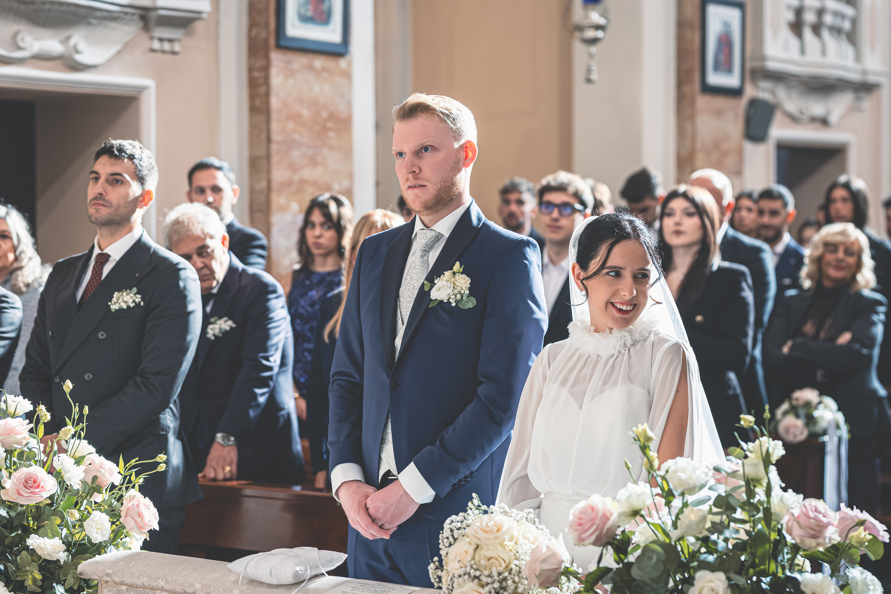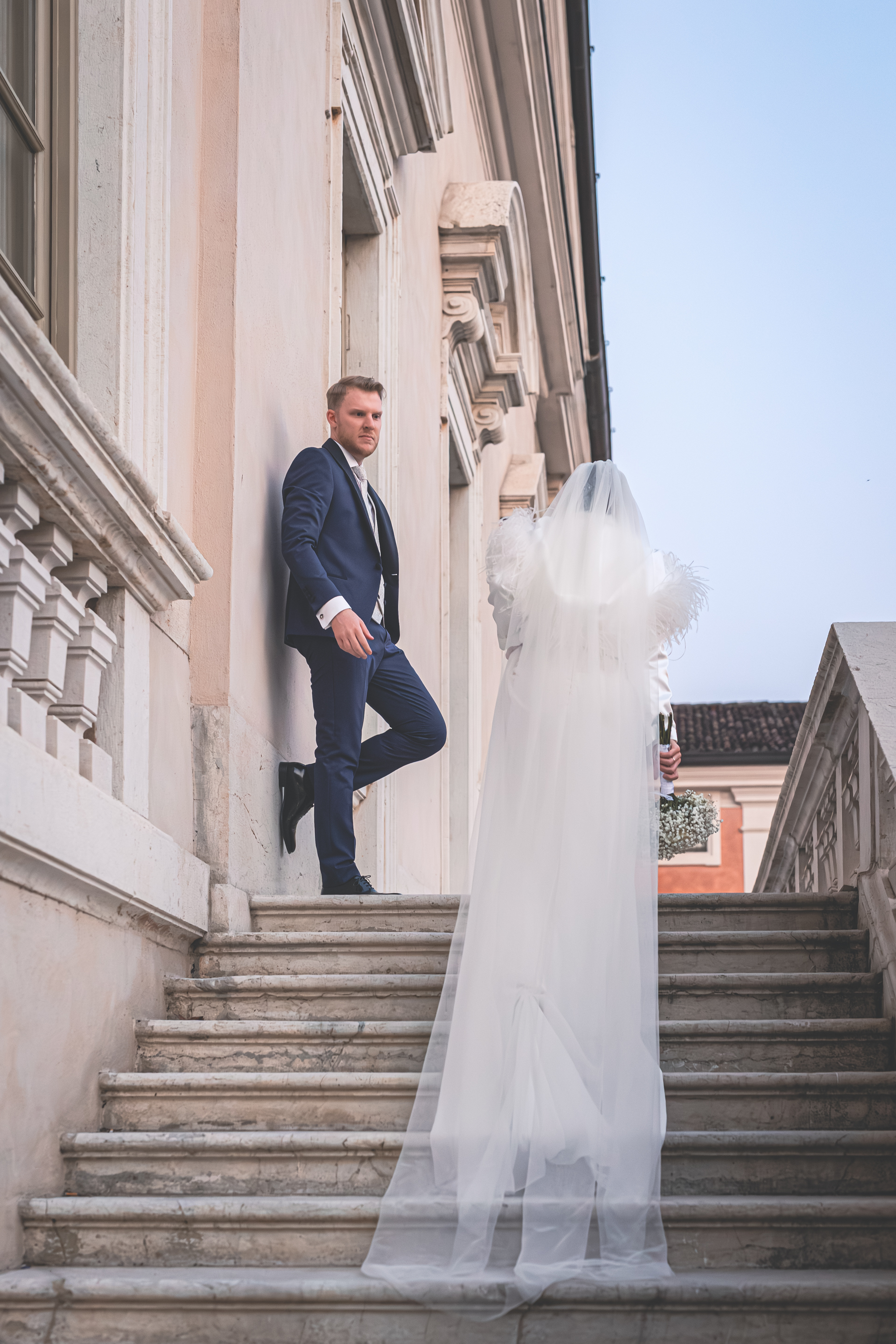 Per il rito ci spostiamo in Chiesa, allestita da Mondo in Fiore. La cerimonia scorre intensa e partecipata, fino all’uscita, quando i consueti baci e abbracci aiutano a sciogliere tensione ed emozioni, lasciando spazio ai sorrisi e alla leggerezza. Da lì ci dirigiamo verso Brescia, nella cornice di Villa Fenaroli. Il sole purtroppo sta già calando e non ci permette di sfruttare fino in fondo tutti gli spazi esterni della location, ma basta davvero poco per trovare comunque l’atmosfera giusta. Appena aperto l’aperitivo, con Francesca e Alessandro ci ritagliamo qualche scatto di complicità, alternando gli ambienti interni ed esterni della Villa, per raccontare con semplicità e naturalezza il loro modo di stare insieme.