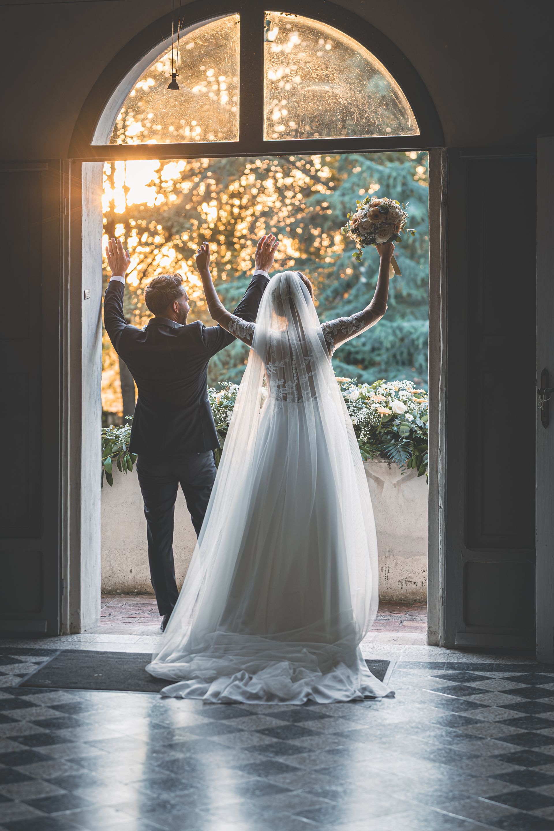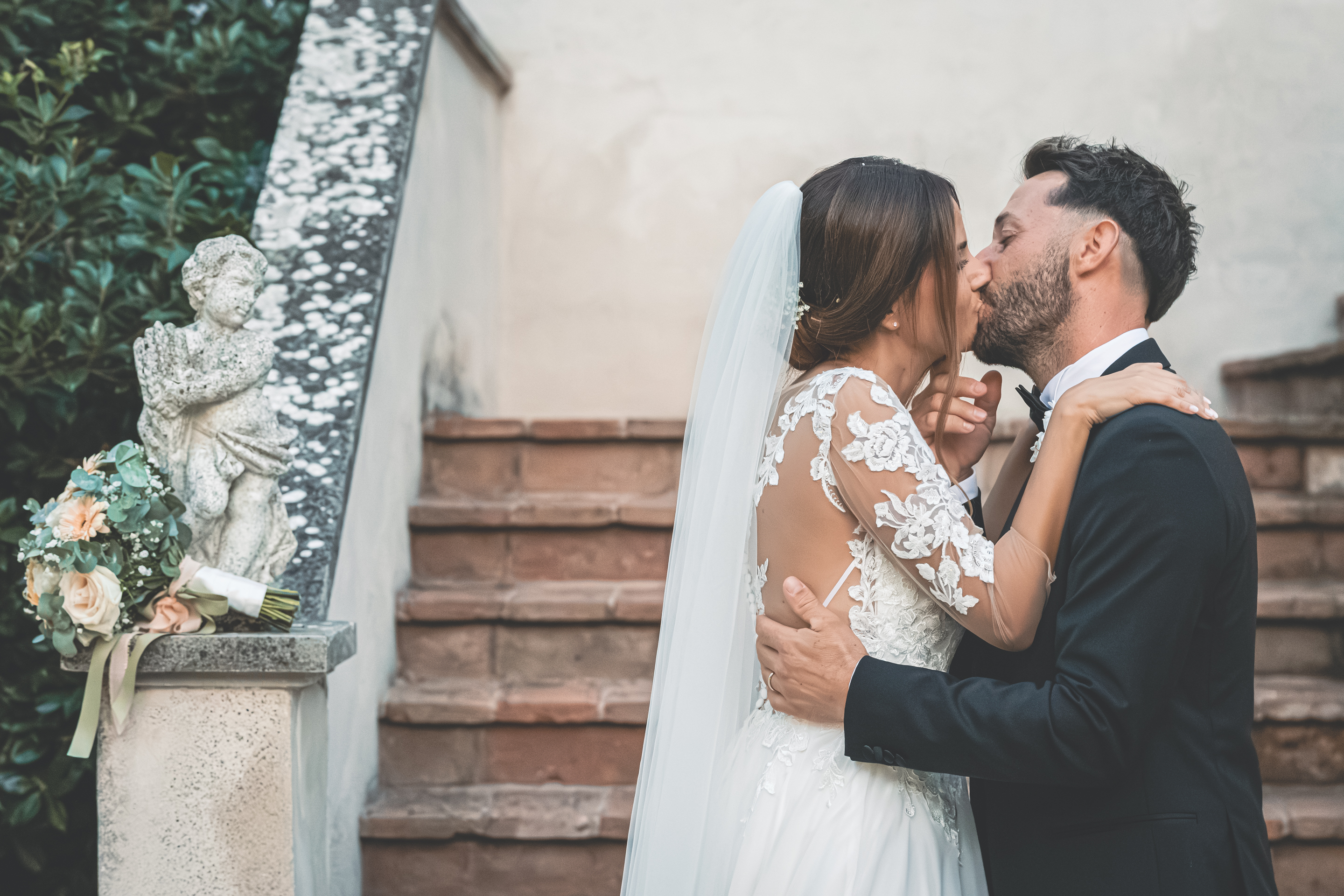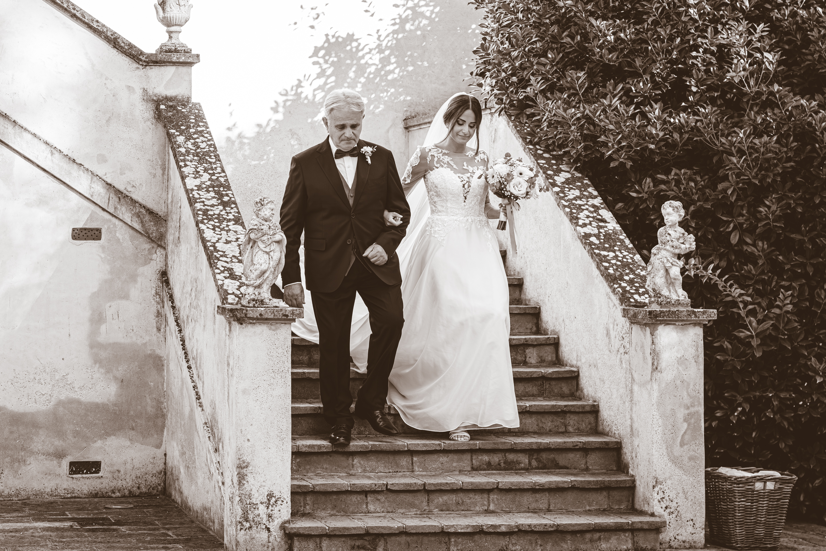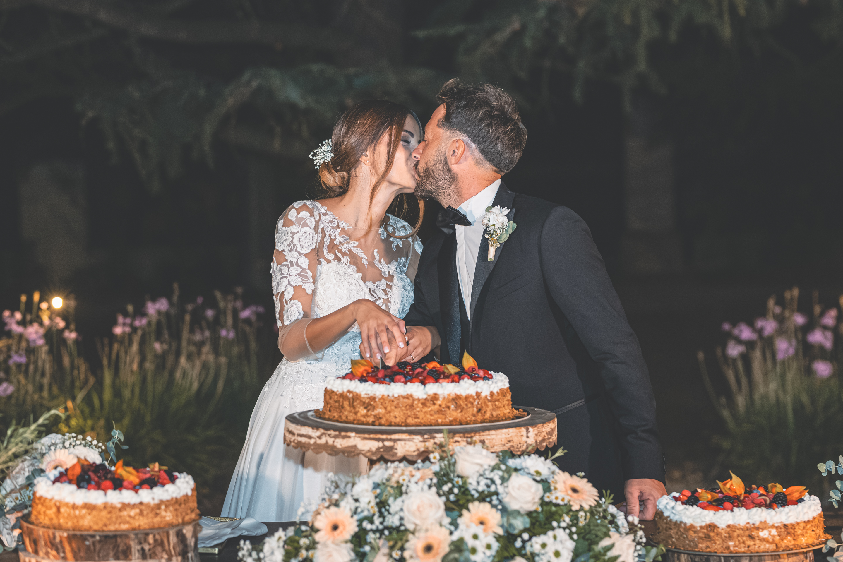 L’ottima cena targata Idea in Cucina scorre nel parco sotto le luci all’italiana: risate, brindisi, e l’allegria contagiosa degli amici di una vita. Il taglio torta torna fronte Villa, seguito dal primo ballo e da un ballo speciale tra Francesca e il suo papà, carico di emozione. Poi il cambio d’abito: Francesca lancia il bouquet dalla scalinata della Villa e la festa si sposta all’interno, tra musica e balli fino a notte inoltrata. Un matrimonio solare, autentico, pieno di persone vere: un racconto di luce e presenza.