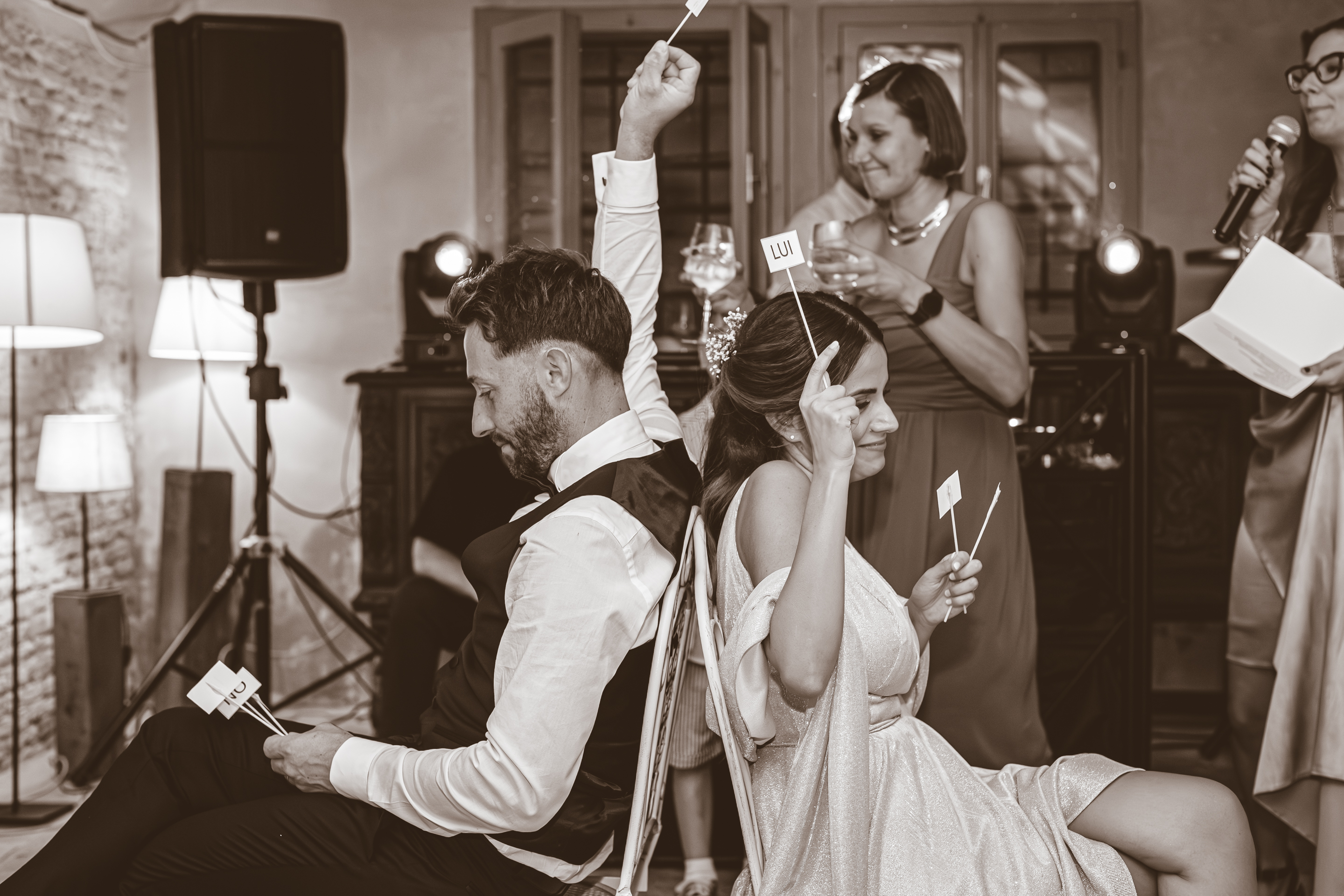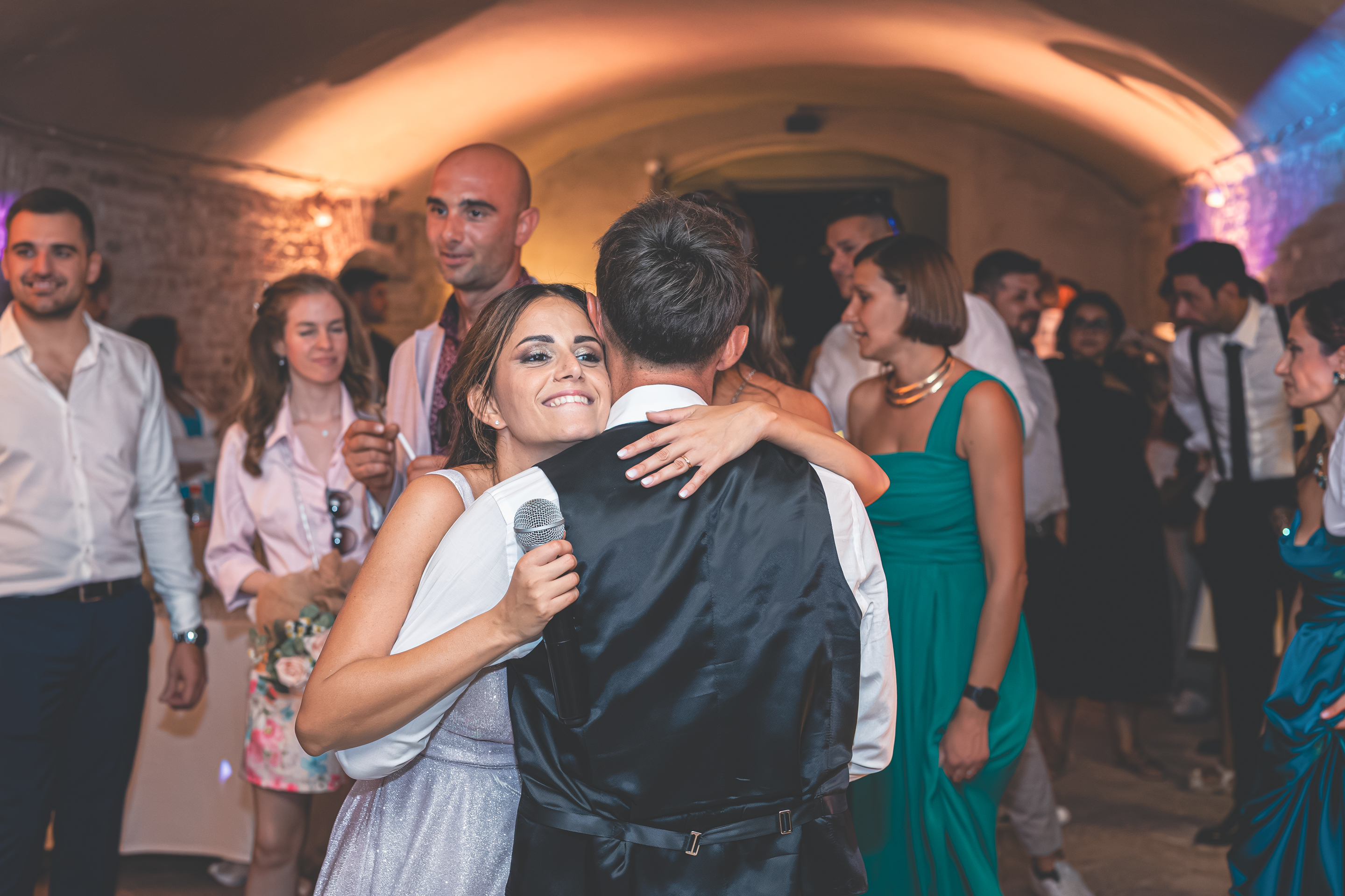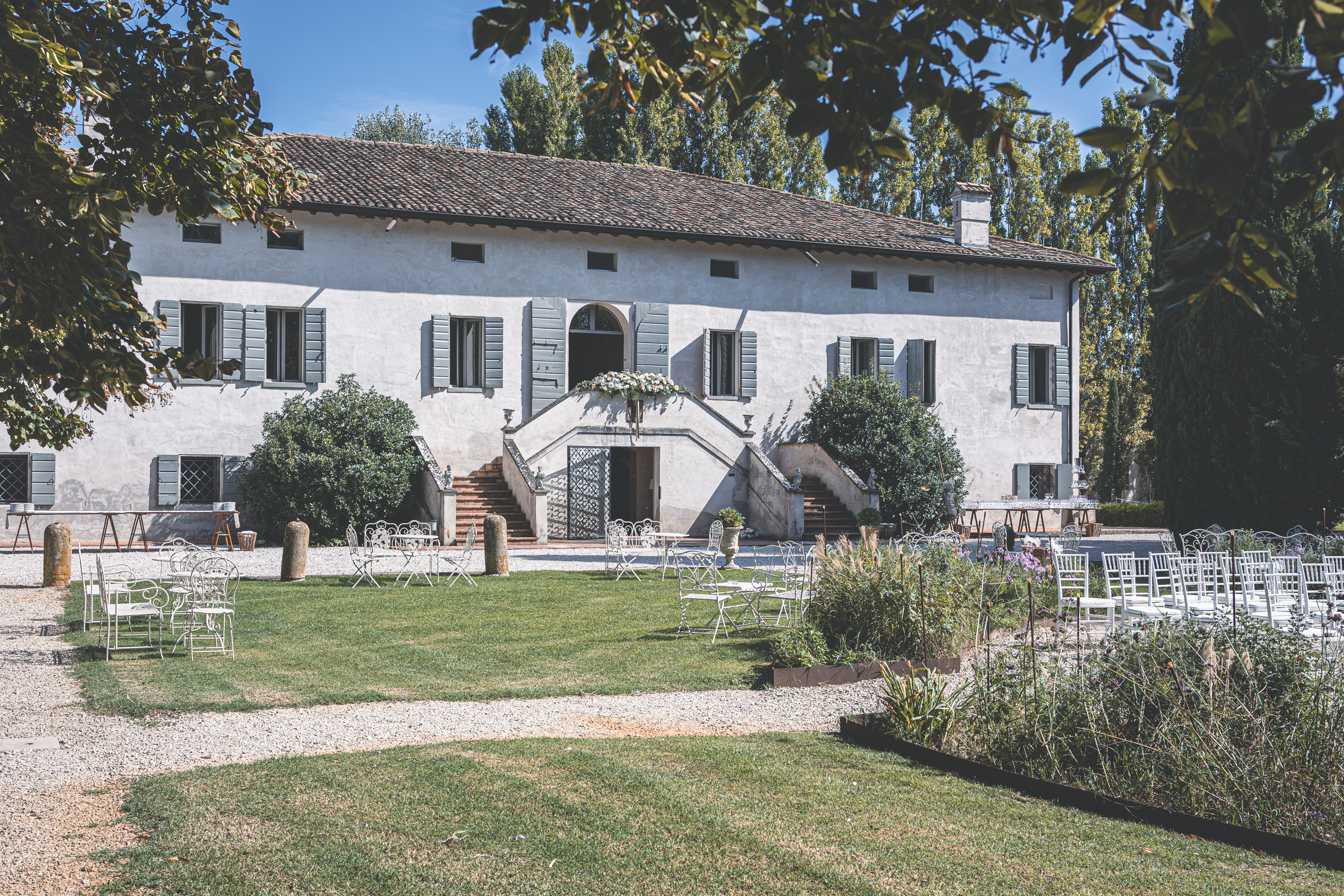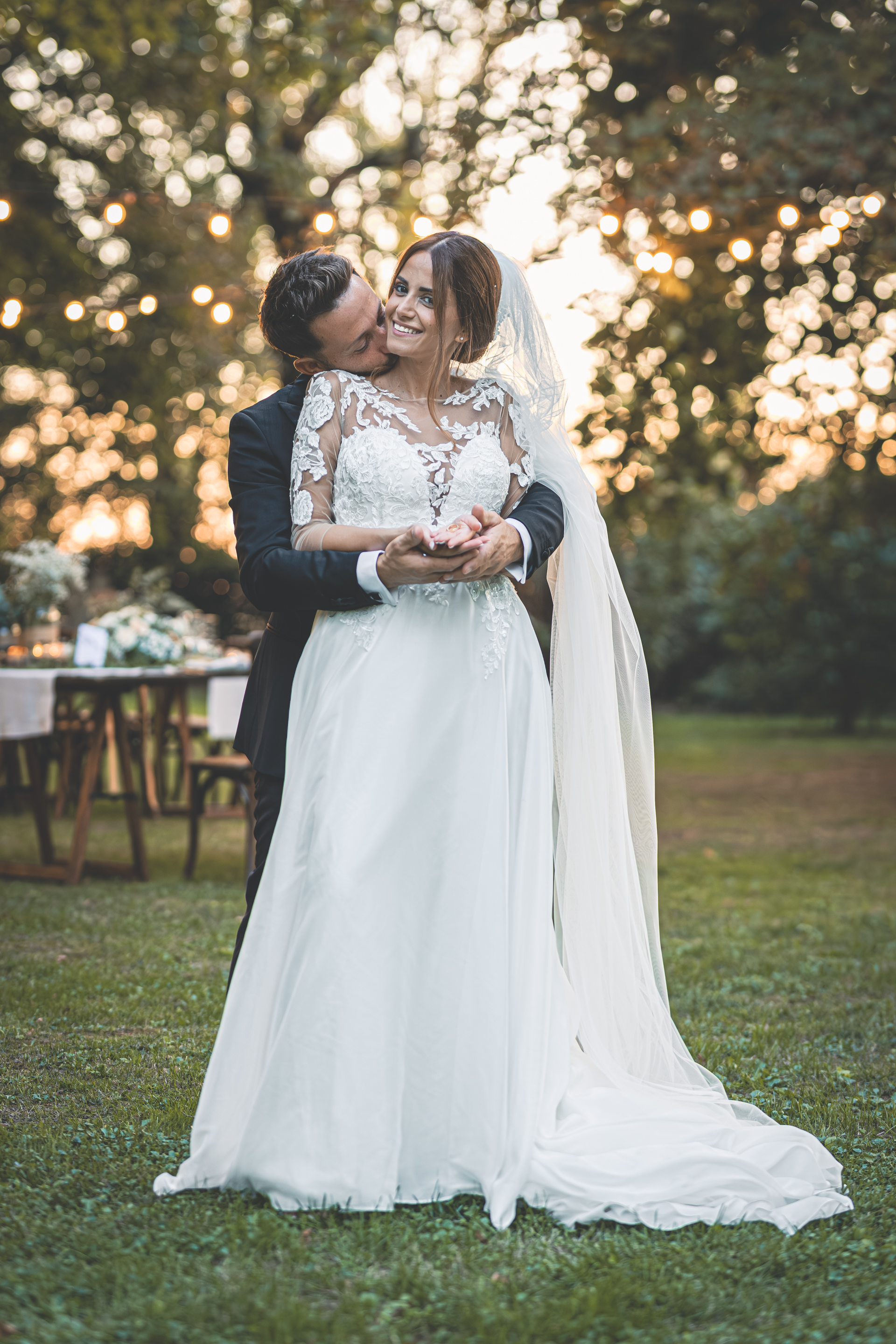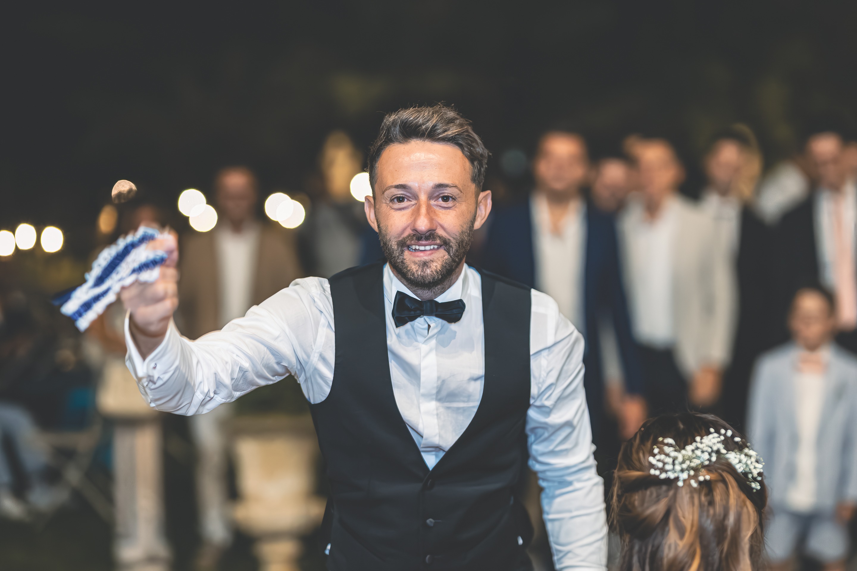 L’ottima cena targata Idea in Cucina scorre nel parco sotto le luci all’italiana: risate, brindisi, e l’allegria contagiosa degli amici di una vita. Il taglio torta torna fronte Villa, seguito dal primo ballo e da un ballo speciale tra Francesca e il suo papà, carico di emozione. Poi il cambio d’abito: Francesca lancia il bouquet dalla scalinata della Villa e la festa si sposta all’interno, tra musica e balli fino a notte inoltrata. Un matrimonio solare, autentico, pieno di persone vere: un racconto di luce e presenza.