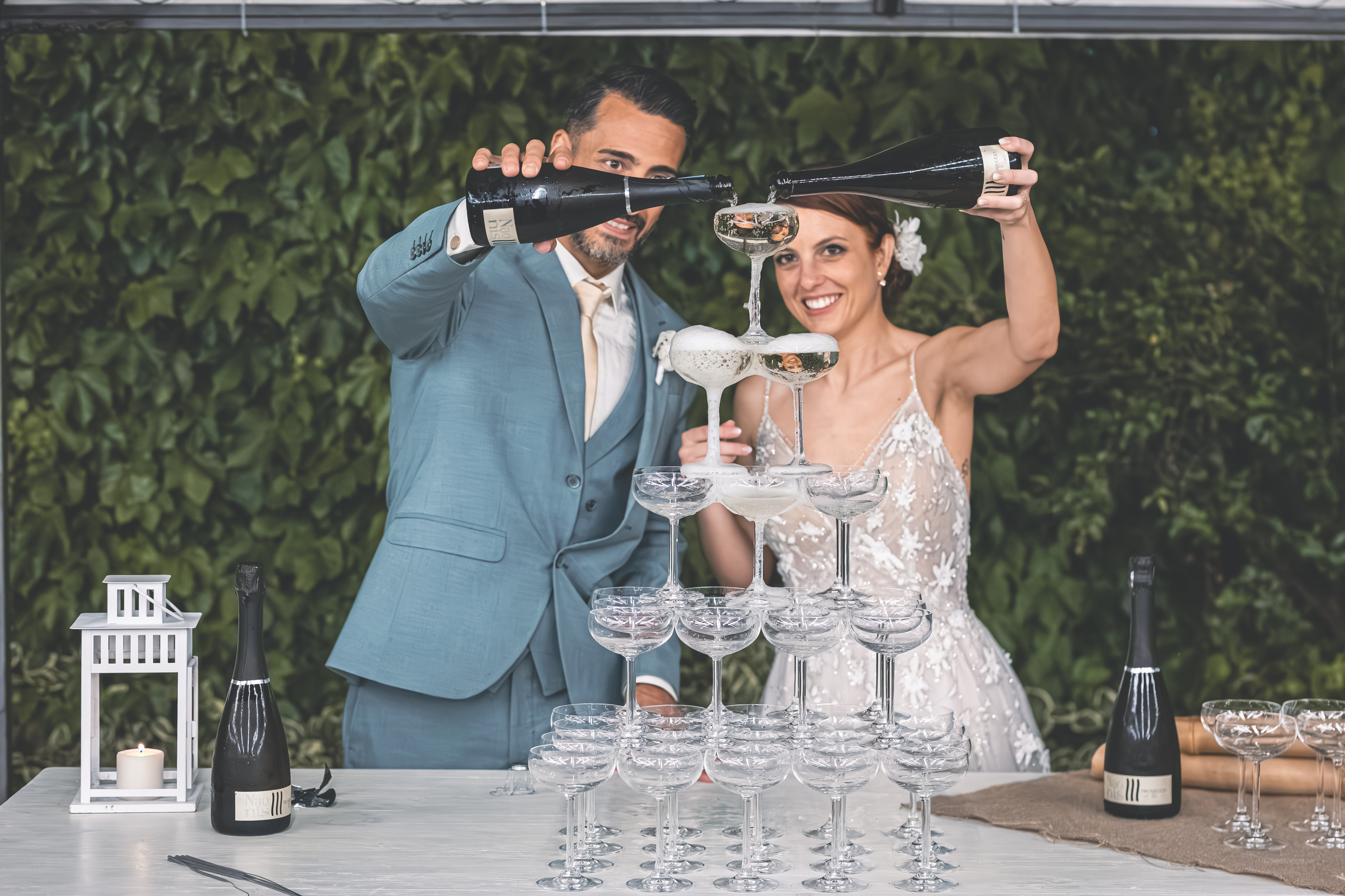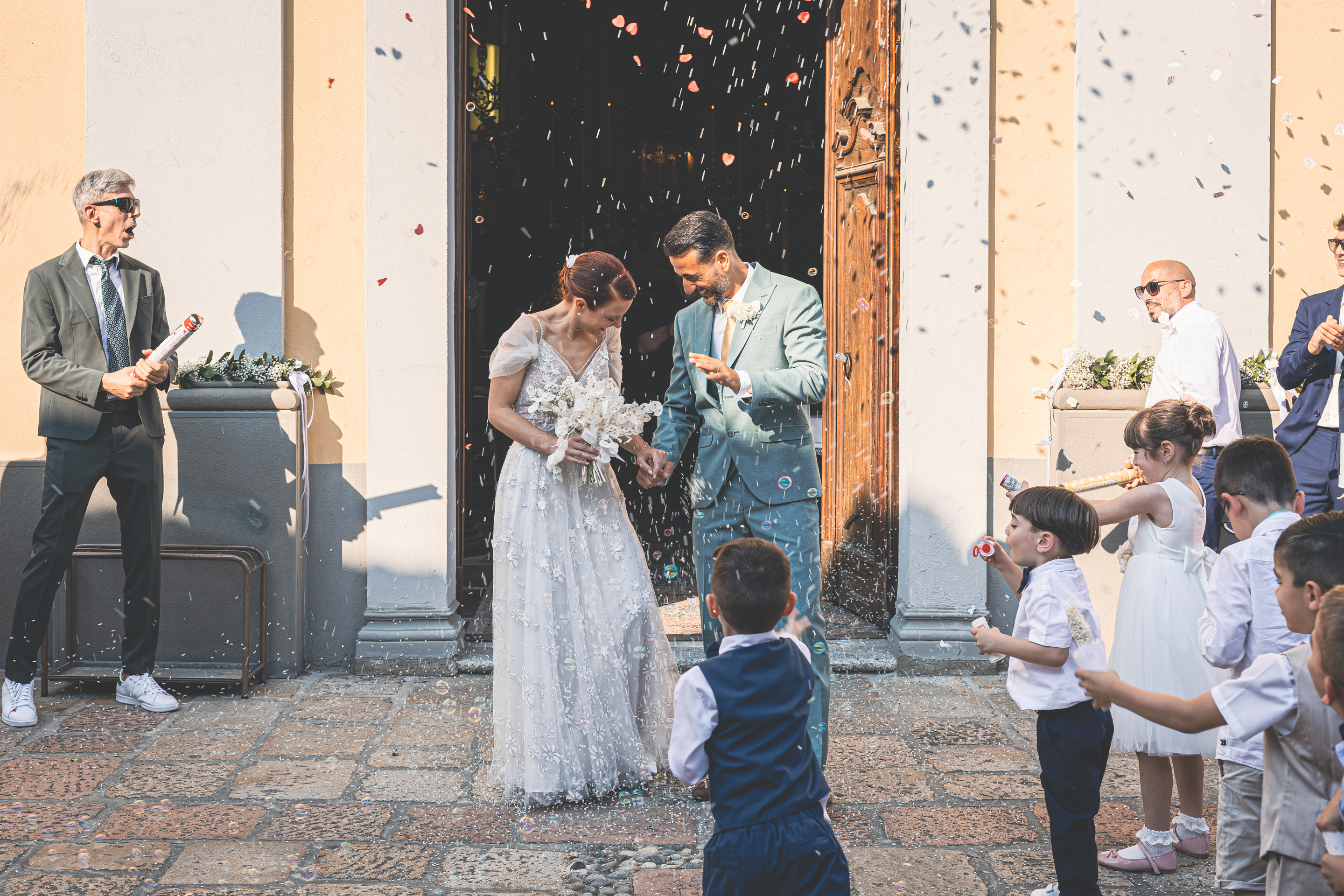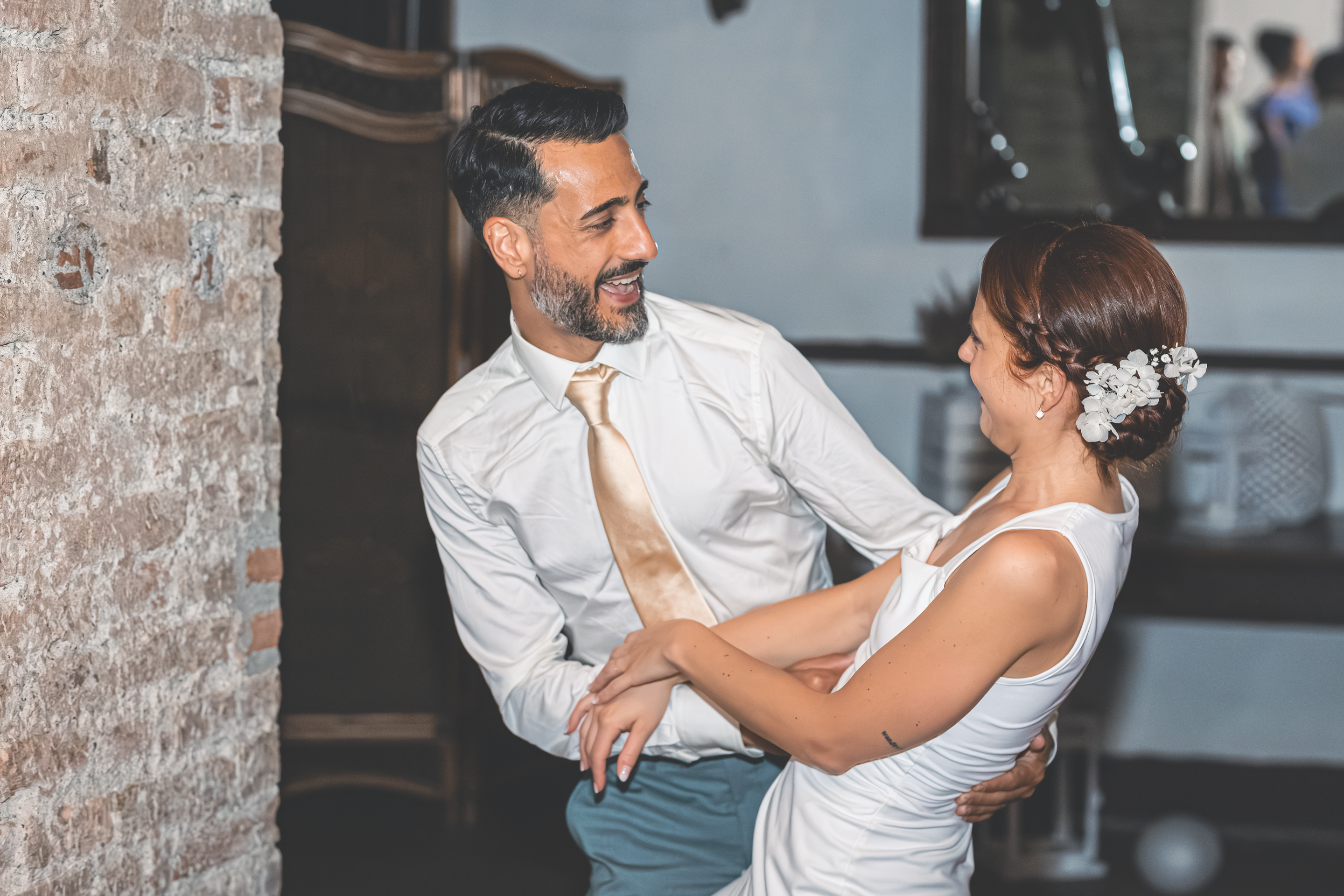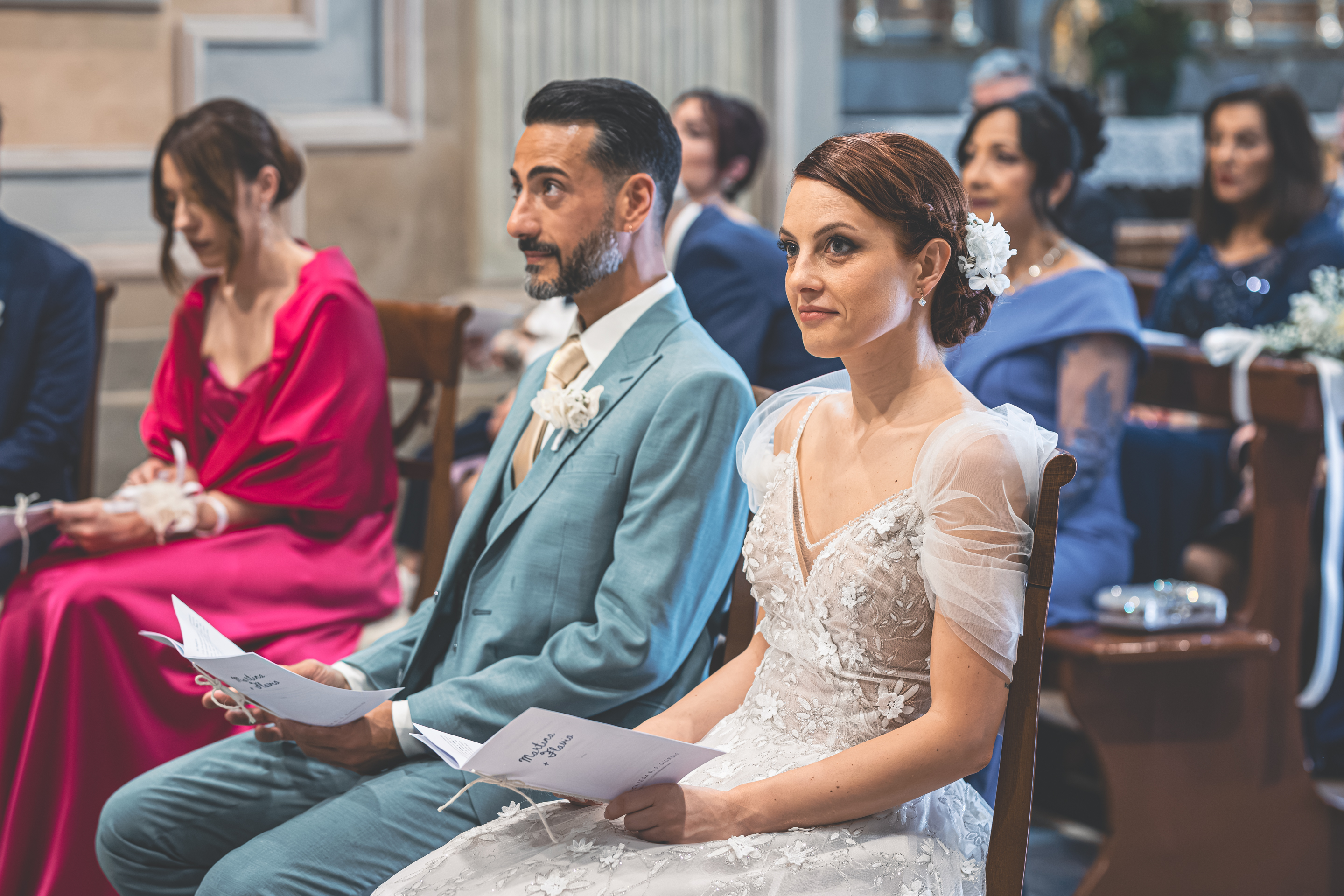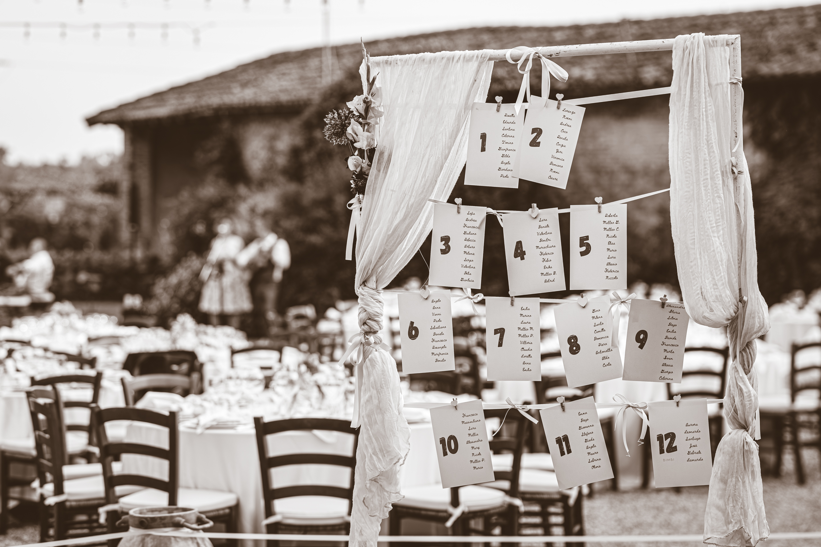 Ci spostiamo nella piccola Chiesa della frazione per un rito intimo e molto partecipato, carico di emozione e presenza vera. All’uscita, una pioggia di baci e abbracci accoglie gli sposi prima di tornare a piedi verso il Castello, dove ad attenderli c’è l’aperitivo curato nei dettagli da Top Parties. Il pomeriggio scorre tra brindisi, sorrisi e la musica elegante del duo Sweet & Sour. La cena si svolge all’aperto, sotto un cielo punteggiato di luci all’italiana, mentre la sera regala il suo momento più speciale: ogni tavolo riceve una torta da tagliare insieme a Martina e Flavio, un gesto pensato dalla sposa per trasformare il taglio della torta in un vero rito collettivo di condivisione. Poi il lancio del bouquet, e infine via ai balli, con Martina che finalmente si lascia andare, libera e felice, a vivere la sua anima festaiola fino a notte inoltrata. Un matrimonio pieno di cuore, calore e cura. Un racconto che rimane.