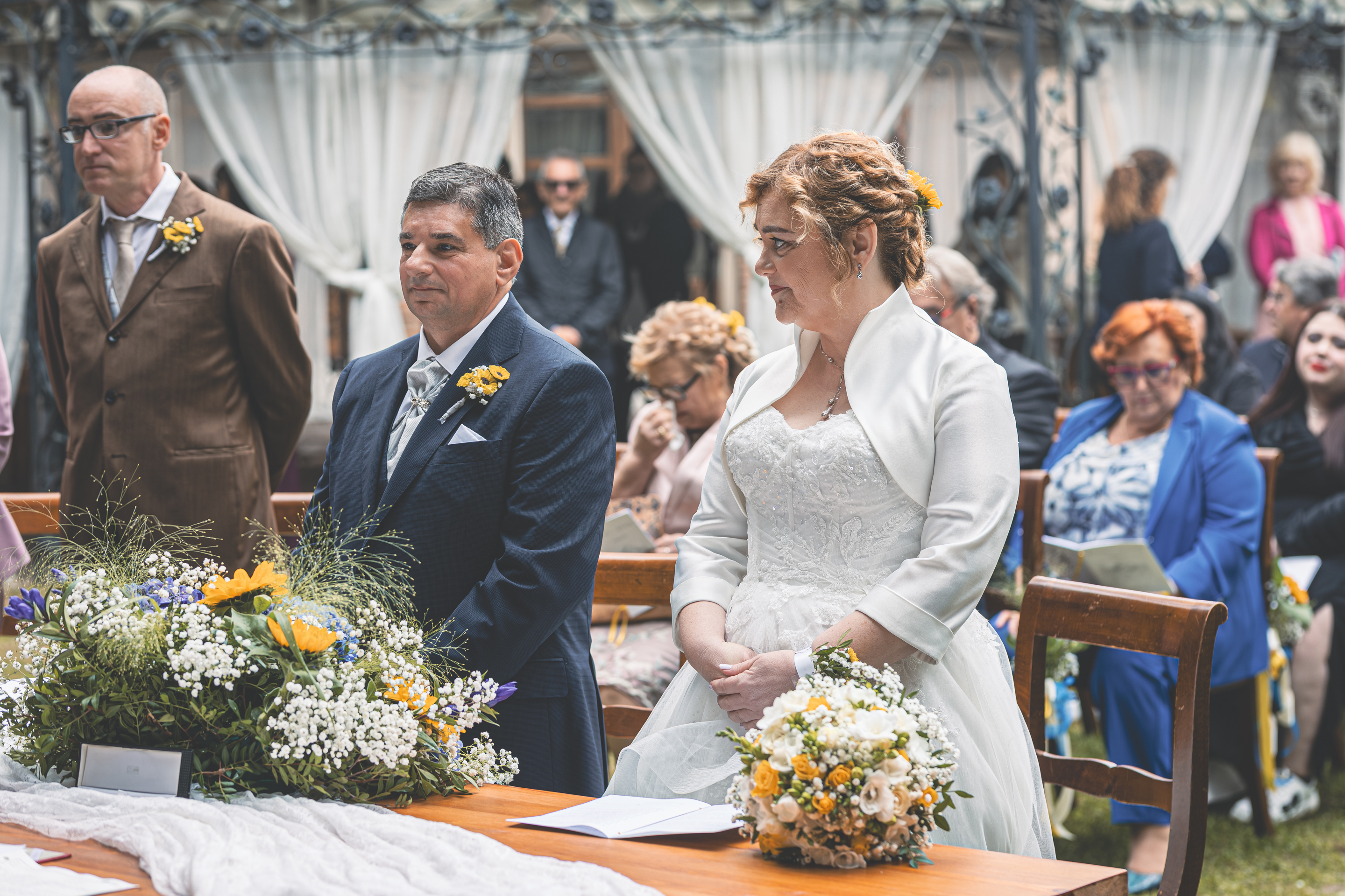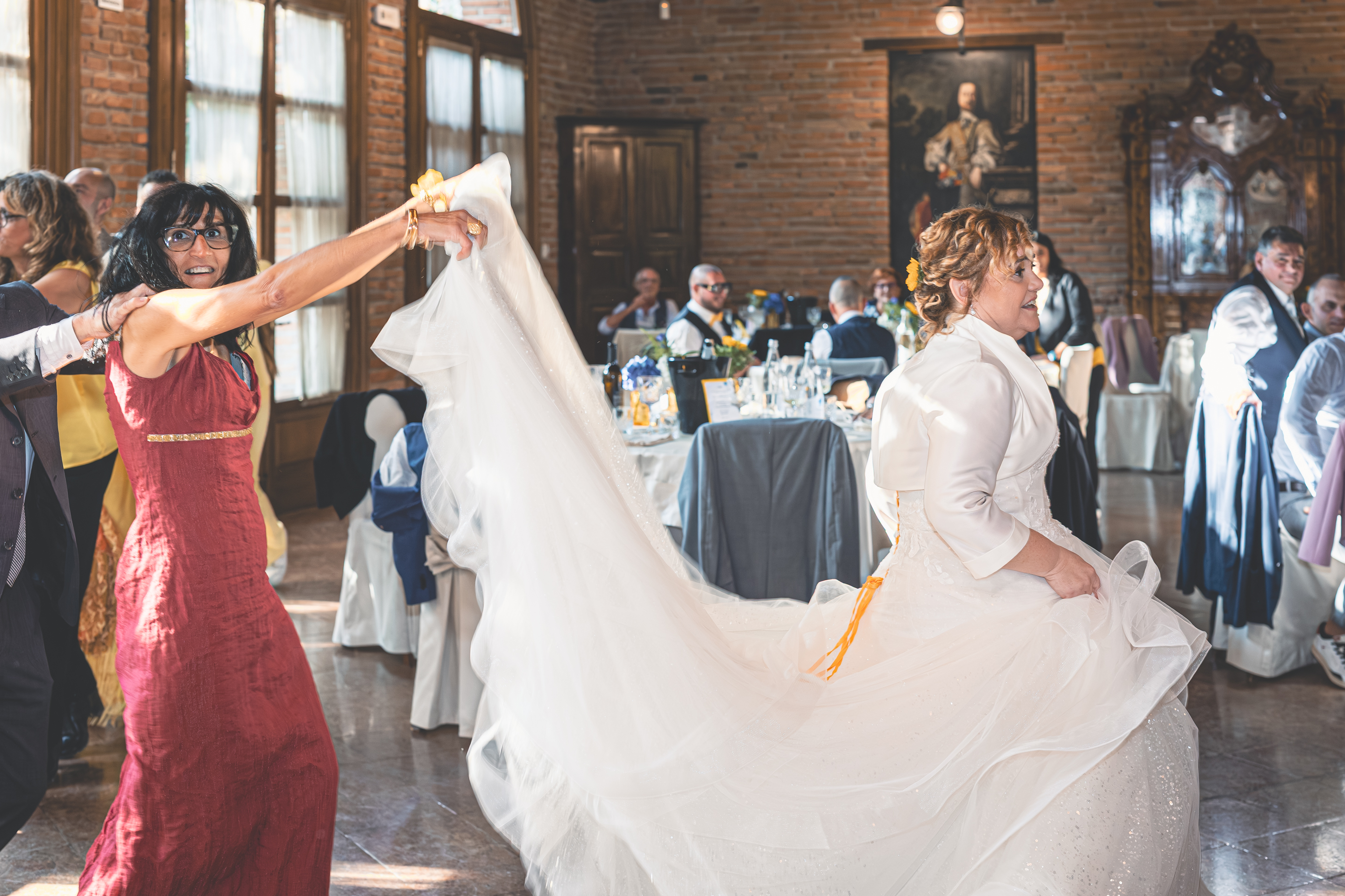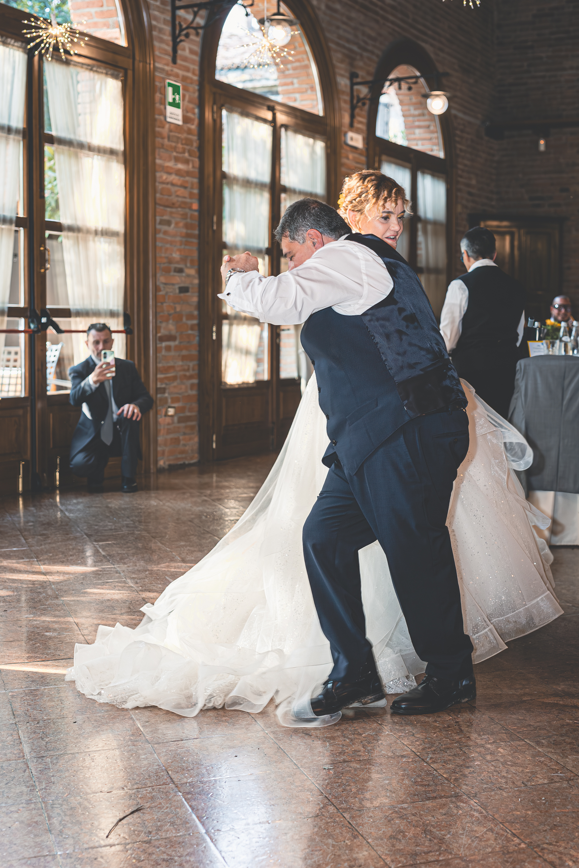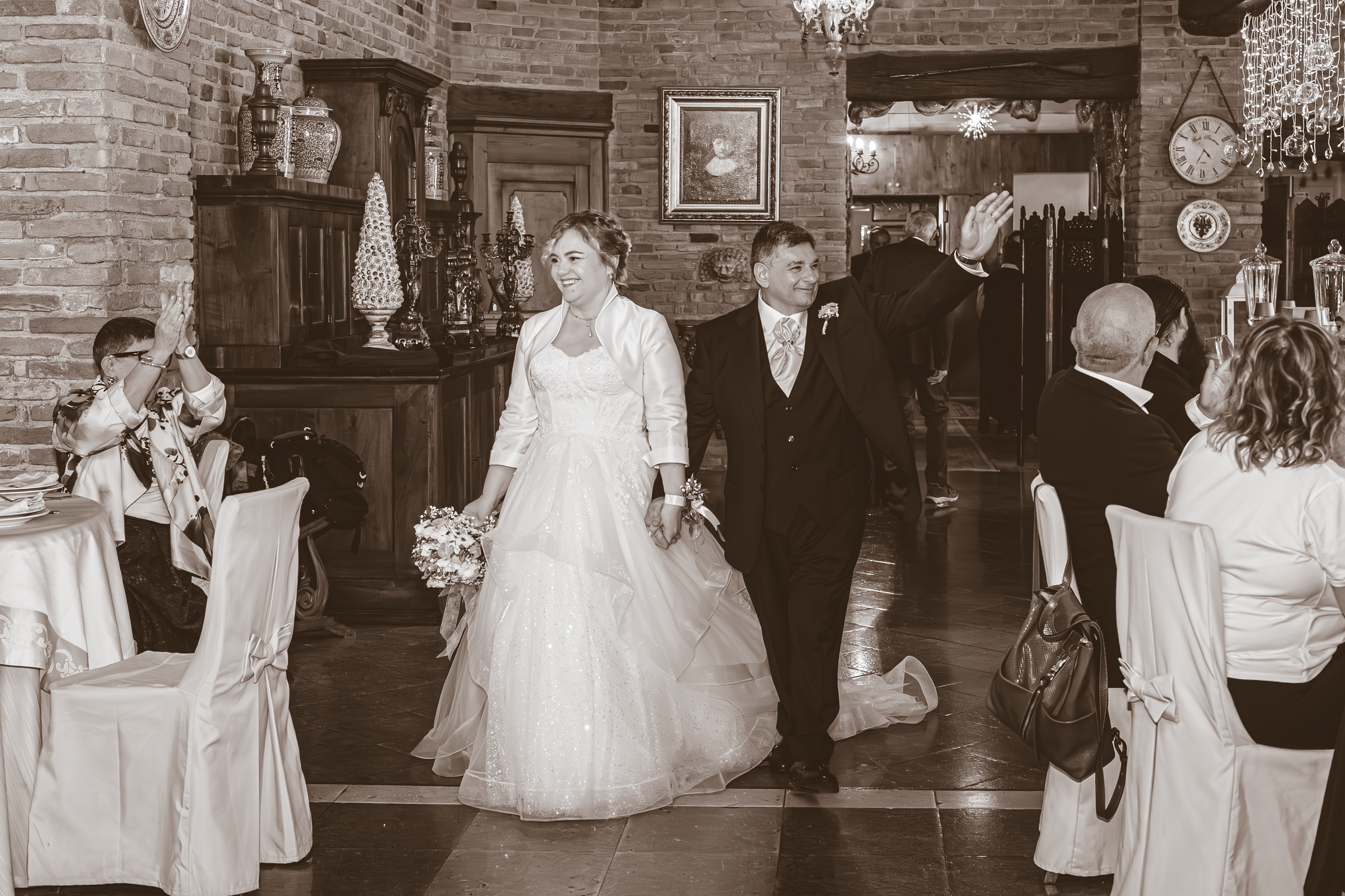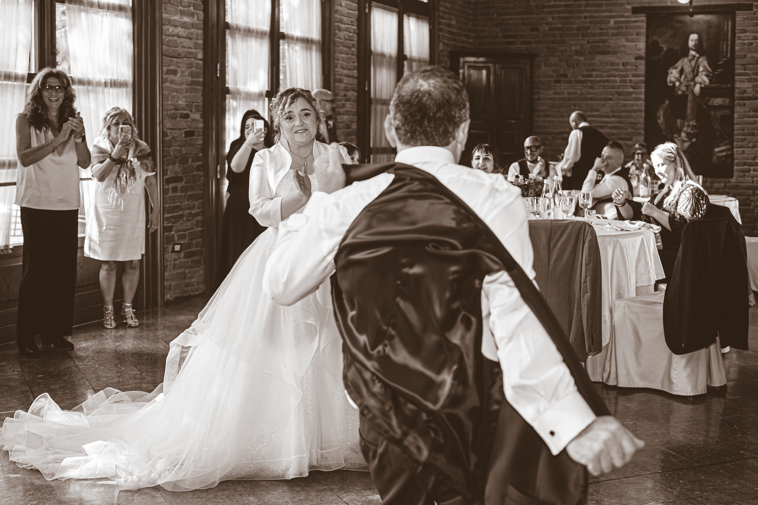 Al termine della cerimonia si apre l’aperitivo all’aperto, nella zona piscina della Villa. È il momento perfetto per qualche scatto di complicità con Melissa e Samuele, approfittando degli eleganti spazi della location. Il pranzo prosegue nella sala interna, dove la musica e la simpatia di Nik Live Music coinvolgono tutti gli invitati: tra una portata e l’altra non mancano momenti di ballo e tanta energia. Il taglio torta avviene all’esterno, prima di lasciare spazio alla festa che continua ancora tra musica e balli fino a sera, con Samuele davvero scatenato in pista. Una giornata autentica e piena di entusiasmo, dove amicizia, passione e divertimento hanno accompagnato Melissa e Samuele in ogni momento del loro matrimonio.