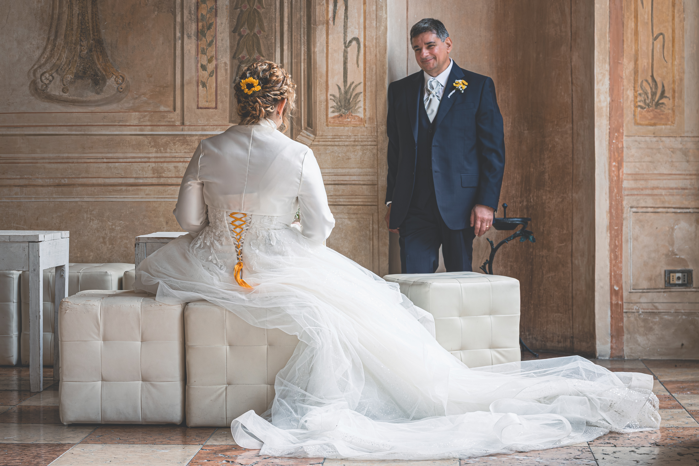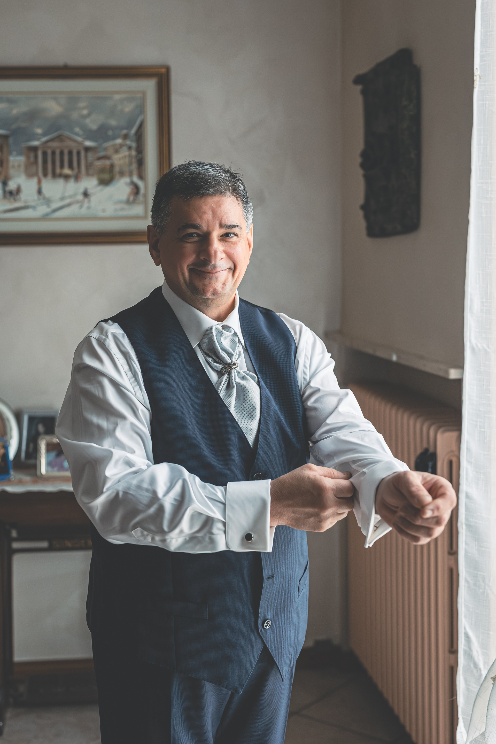Melissa e Samuele si sposano a metà ottobre, in una giornata che inizia avvolta da foschia e umidità, ma che nel corso delle ore riesce a regalarci anche qualche raggio di sole, rendendo l’atmosfera ancora più suggestiva. La giornata inizia con i preparativi di Samuele, ospite a casa di amici dove viene aiutato dalla moglie della coppia negli ultimi dettagli prima di uscire. Mi sposto poi da Melissa, dove Deborah Cremonesi MUA e Capellaio Matto stanno già lavorando alla preparazione della sposa. Il momento dell’abito, firmato Sposi Domani, segna come sempre il passaggio dall’attesa all’emozione.