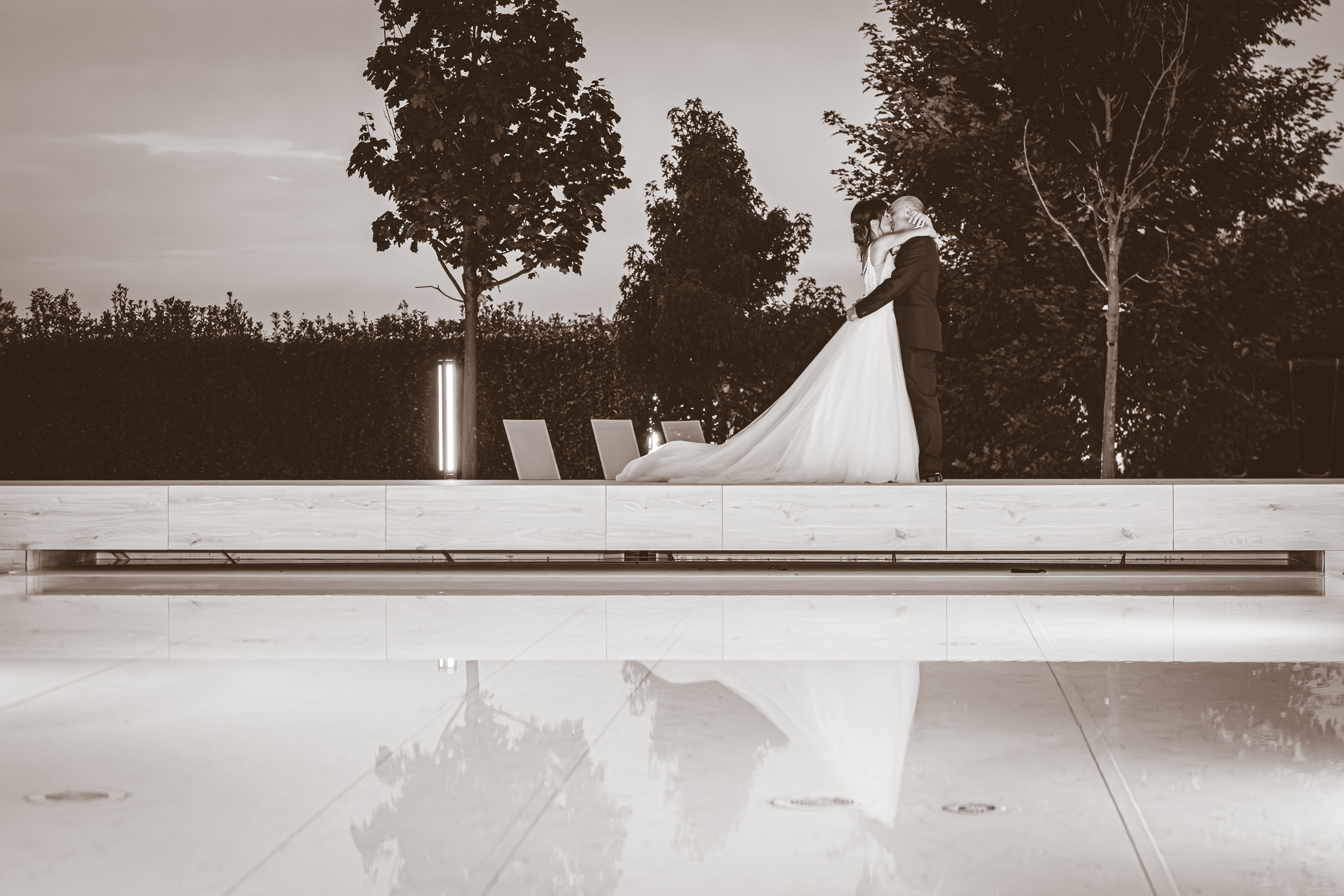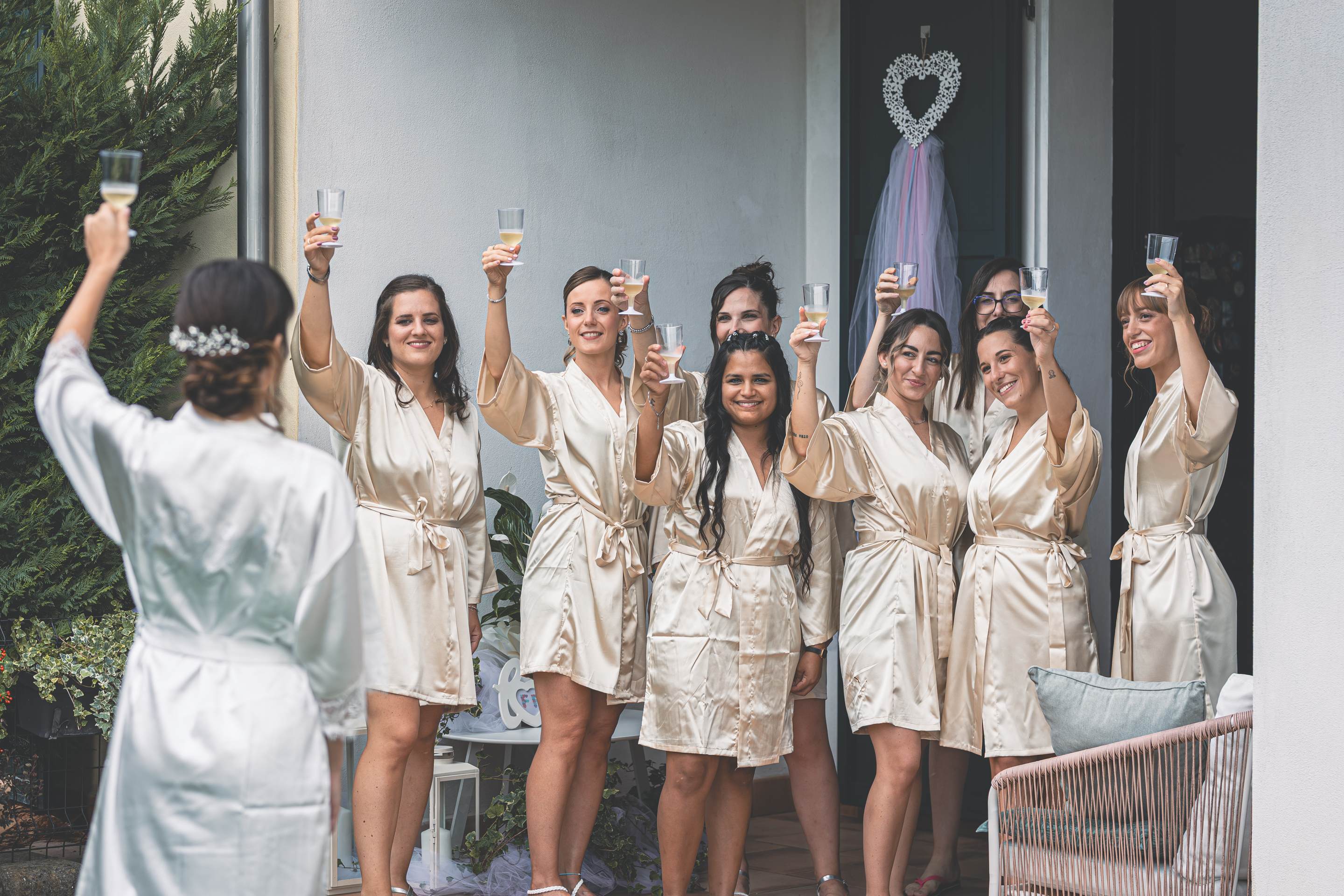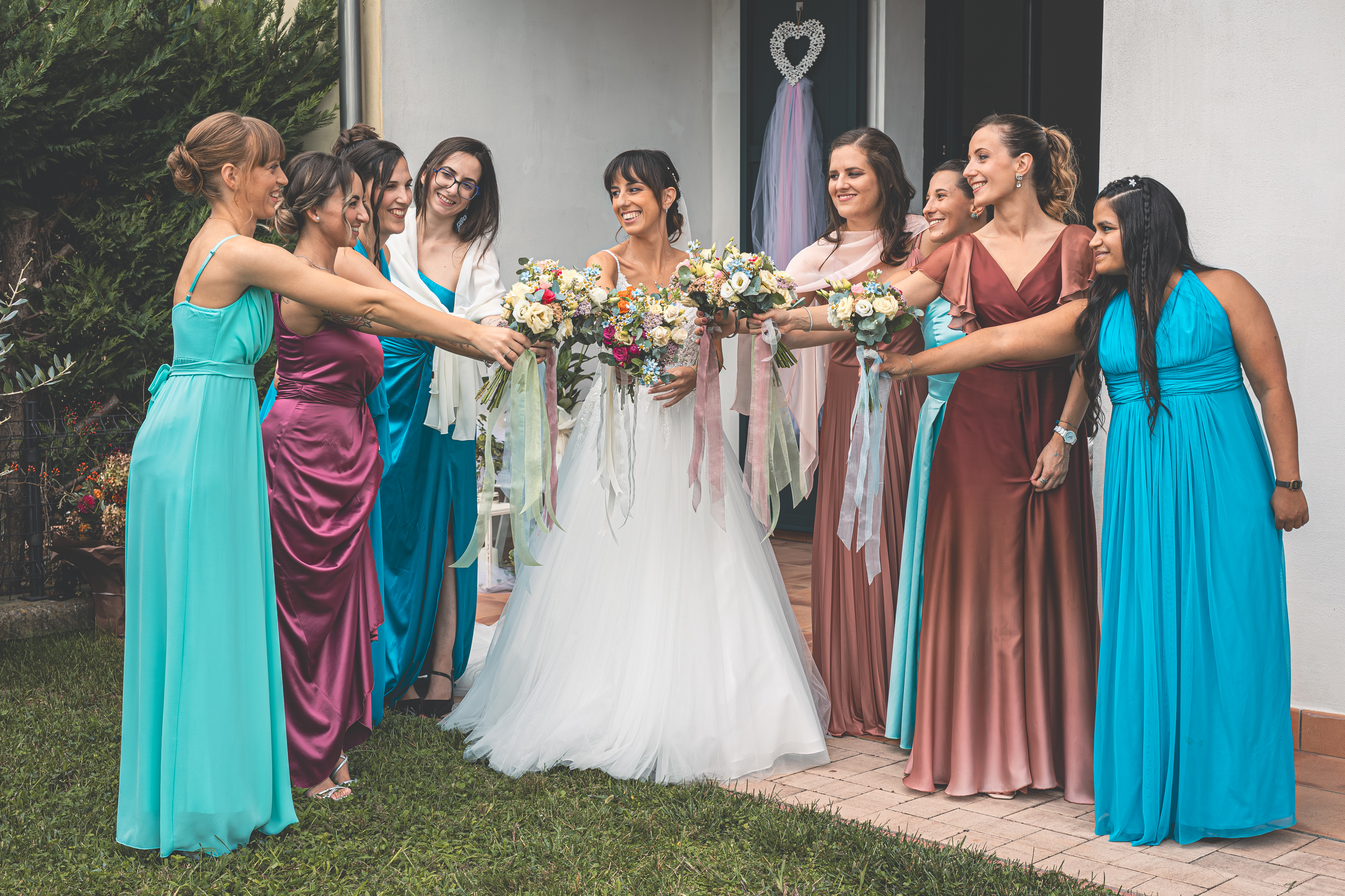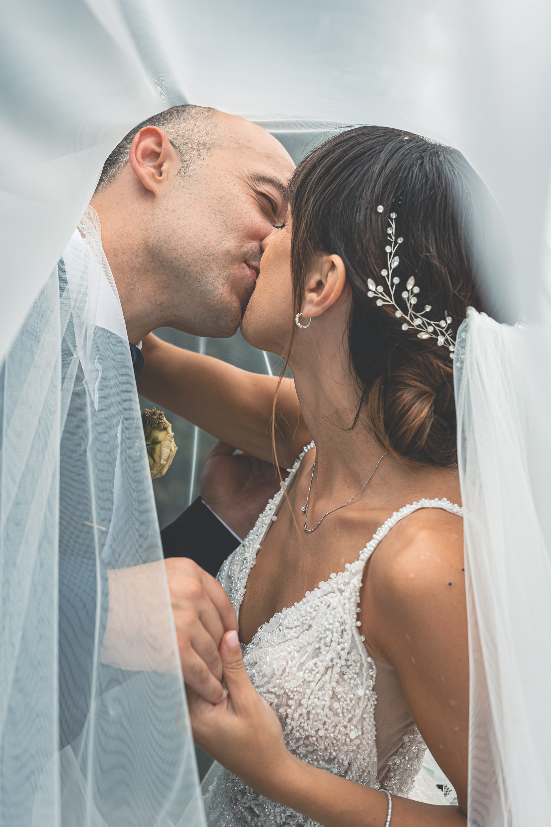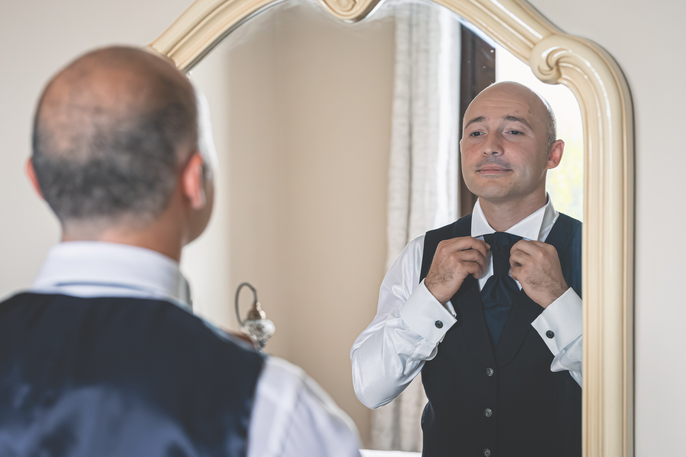 Secondo matrimonio di un intenso weekend di metà settembre, ma questa volta gioco in casa: Patrizia e Franco sono due ragazzi del mio paese, Castellucchio. Insieme a me, per il racconto video della giornata, c’è Alessandro Spiga. Inizio la giornata a casa di Franco, dove lo sposo indossa l’abito firmato Kappa Di Sposi, aiutato dall’amico Alex e dalla mamma. L’atmosfera è raccolta ma giocosa, fatta di sorrisi e battute, prima di raggiungere gli invitati per la tavola bianca e il primo brindisi della giornata. Raggiungiamo poi Patrizia a casa degli sposi. È già pettinata da Acconciature Simona ed è pronta per il trucco curato da Martina Suppa. Con lei ci sono le amiche damigelle, che dopo un brindisi per sciogliere l’emozione la aiutano a indossare l’abito firmato Sposi Domani.