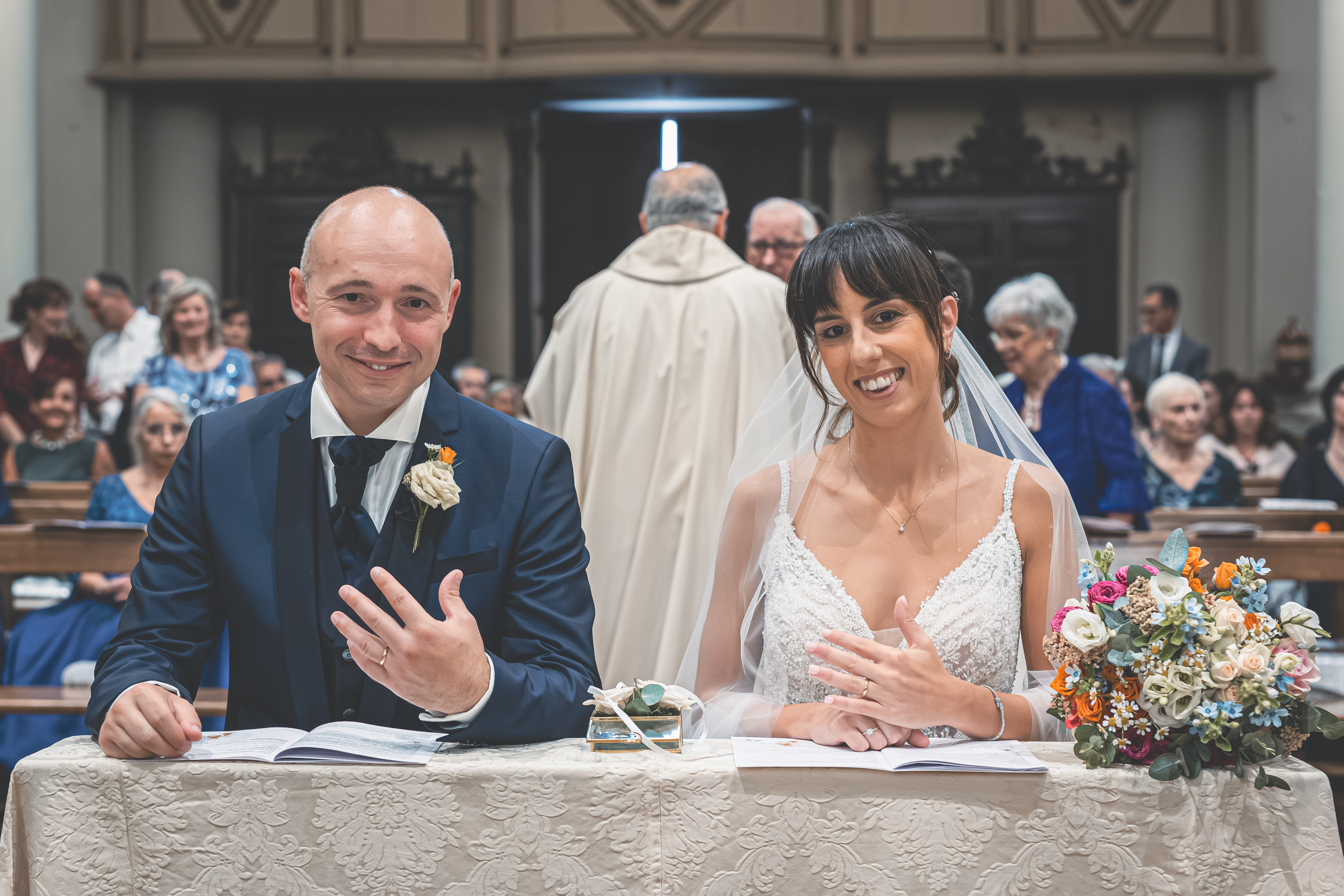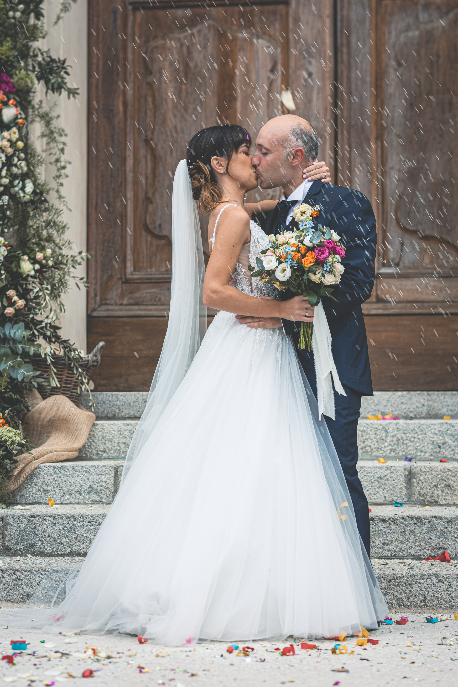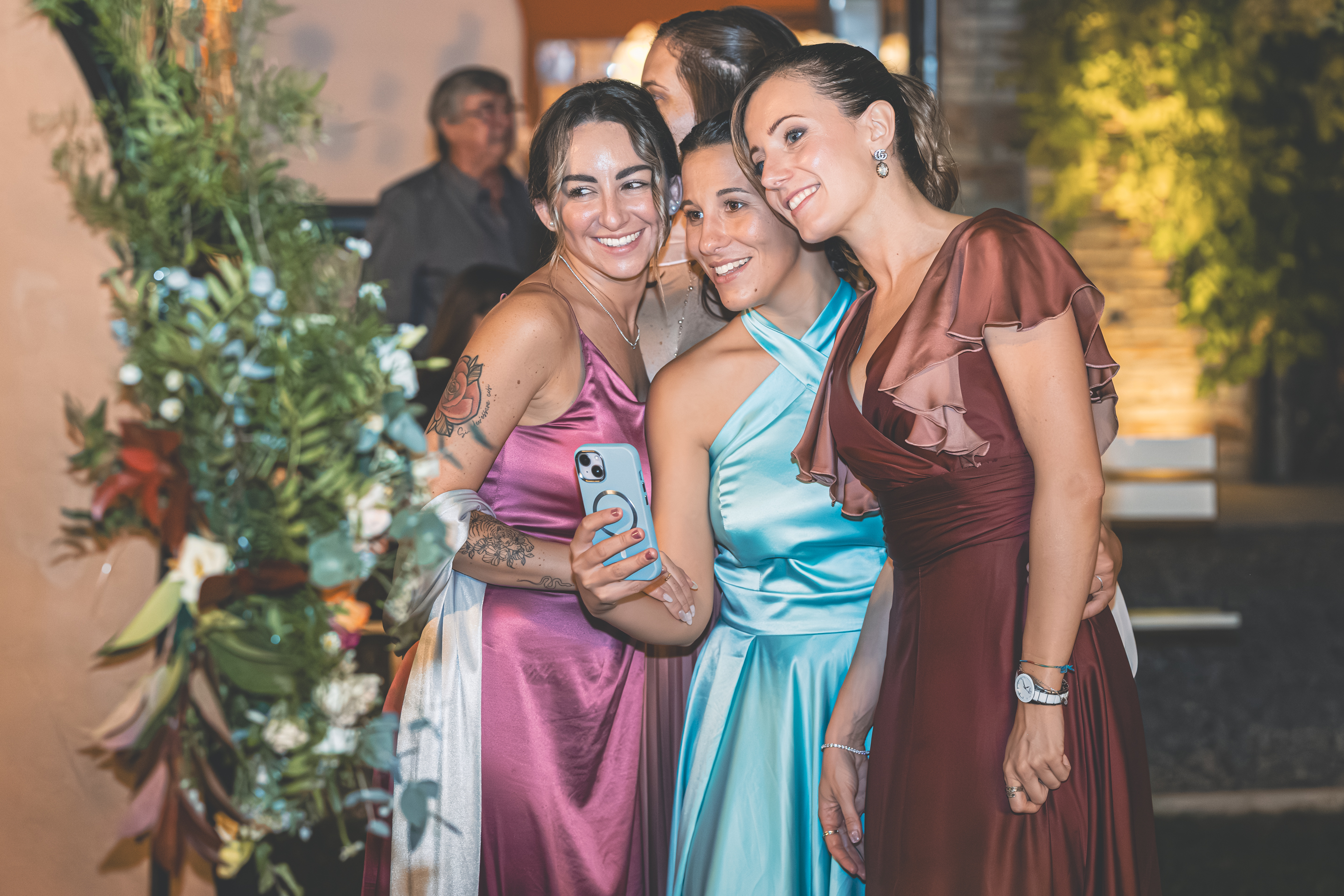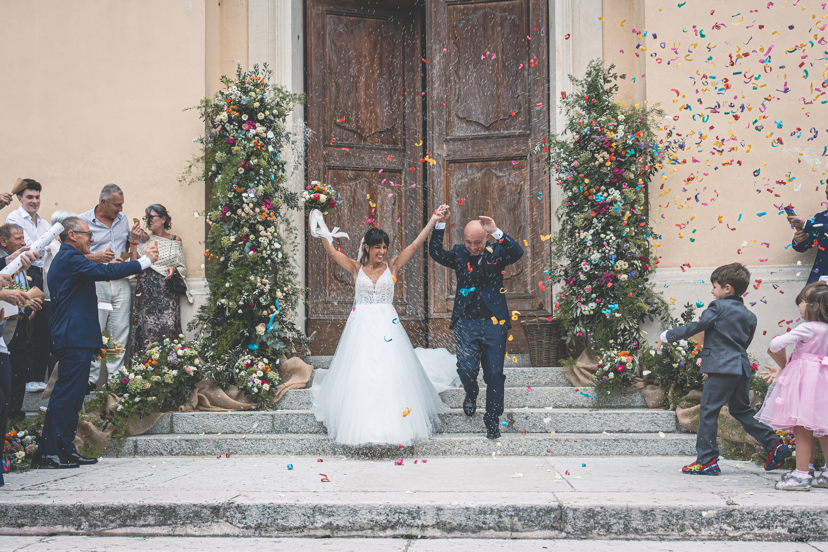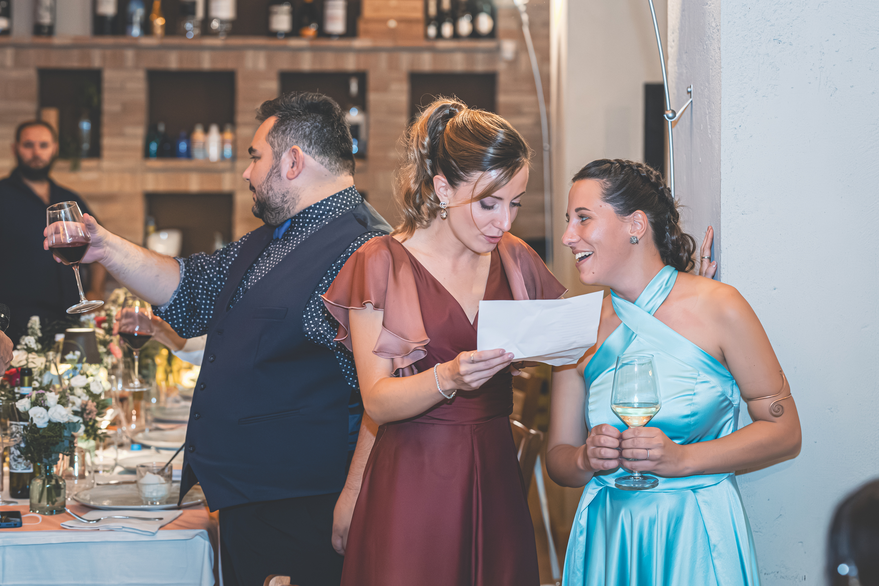 La cerimonia religiosa si svolge in paese, in una chiesa gremita e partecipe, impreziosita dagli allestimenti floreali di LB Fiori. All’uscita, baci, abbracci e la classica foto di gruppo sul sagrato. Prima di raggiungere gli invitati per l’aperitivo, ci fermiamo con gli Sposi a Villa Aurelia per un saluto alla nonna di Patrizia. Un momento delicato e sincero, che diventa anche occasione per qualche scatto di complicità nel parco. La festa prende vita poi al nostro arrivo all’Osteria di Cimbriolo, dove gli invitati hanno già iniziato a divertirsi tra buon cibo e la musica di DJonny.