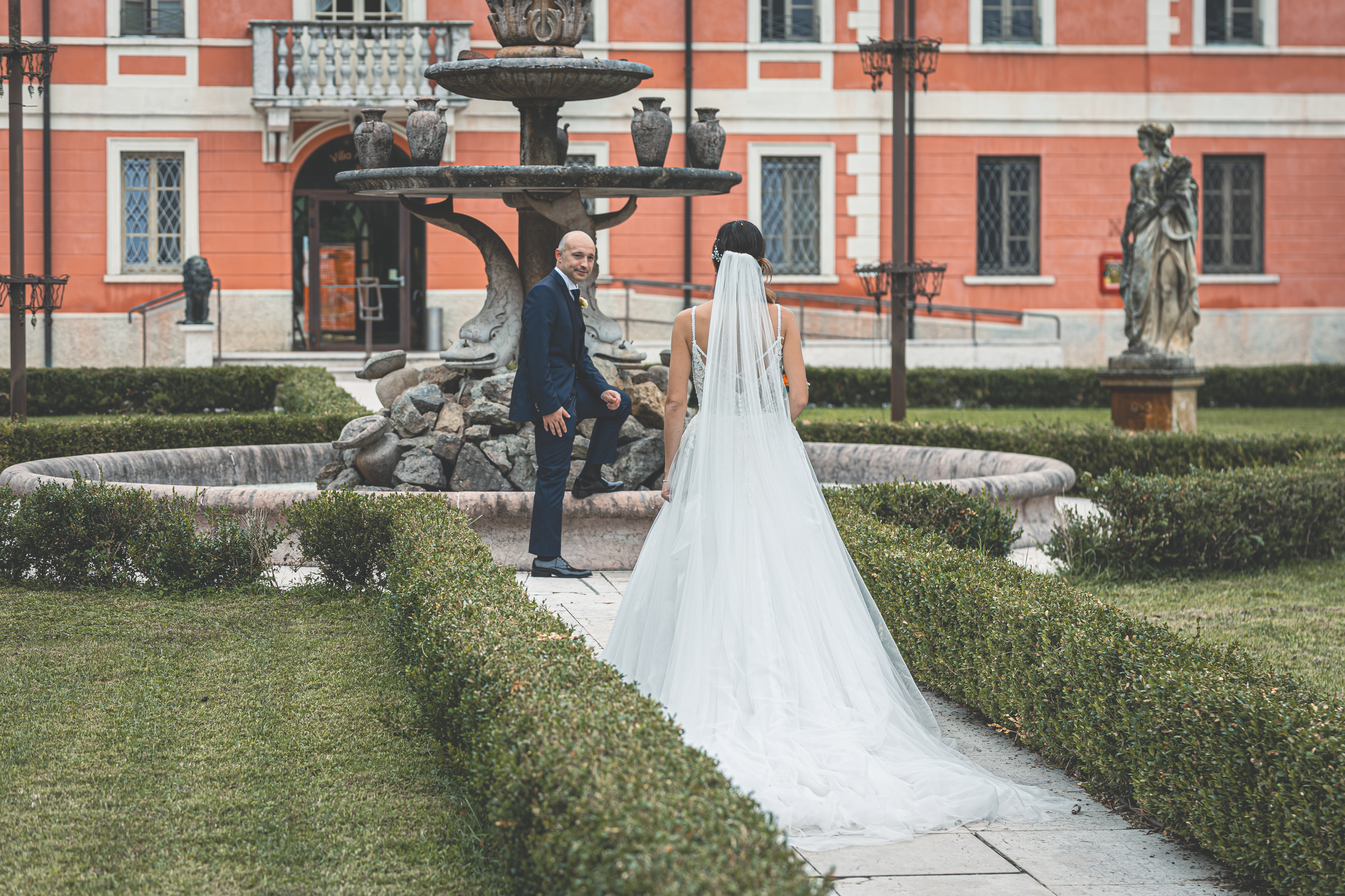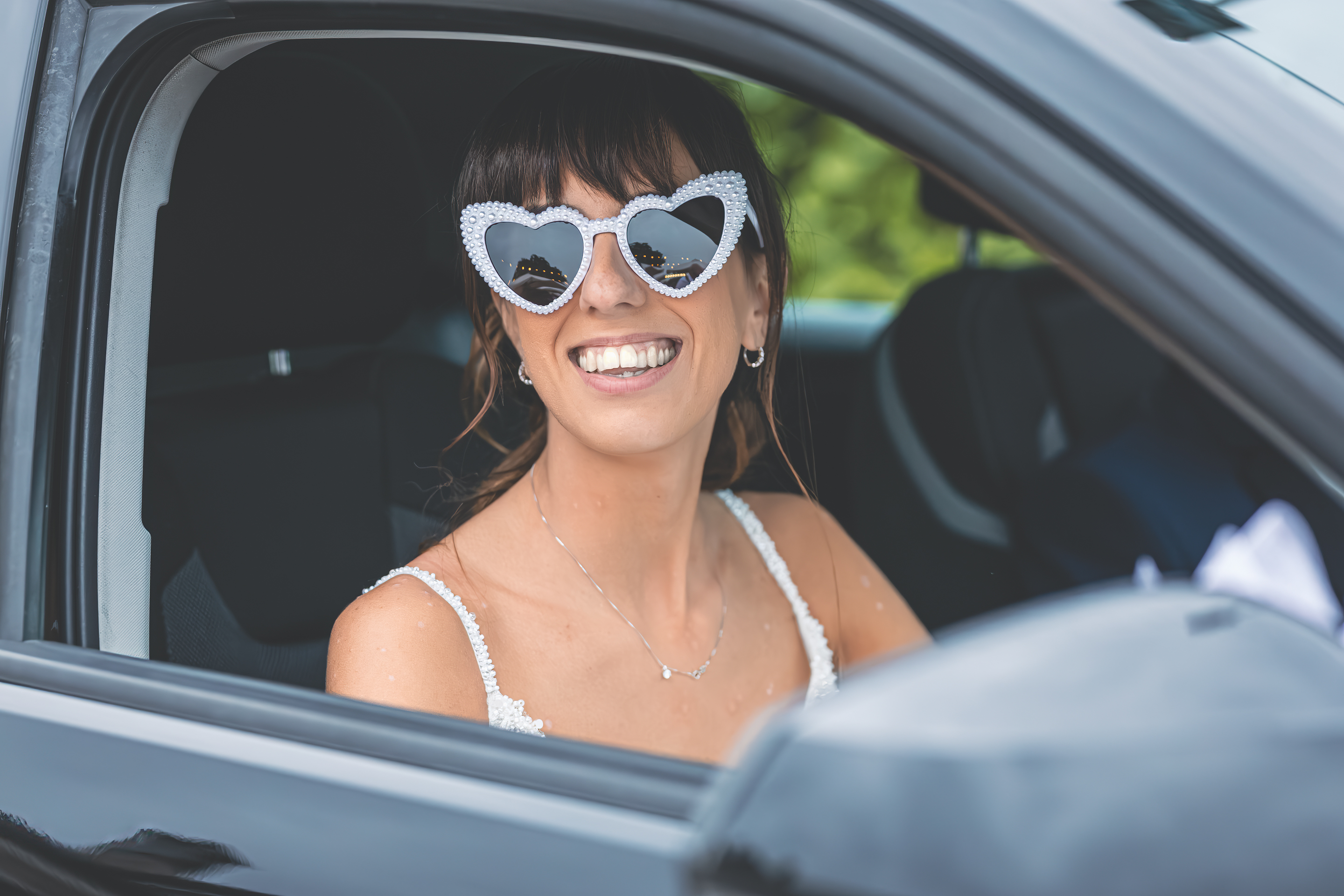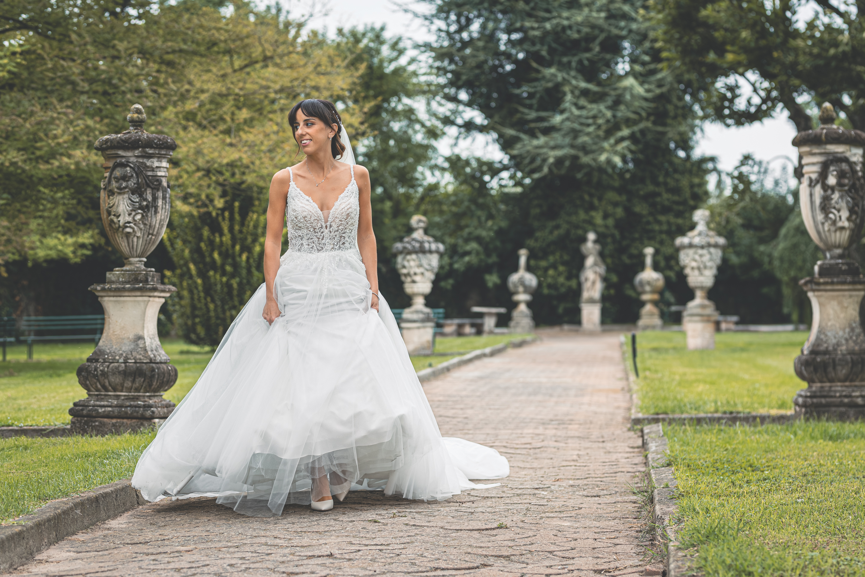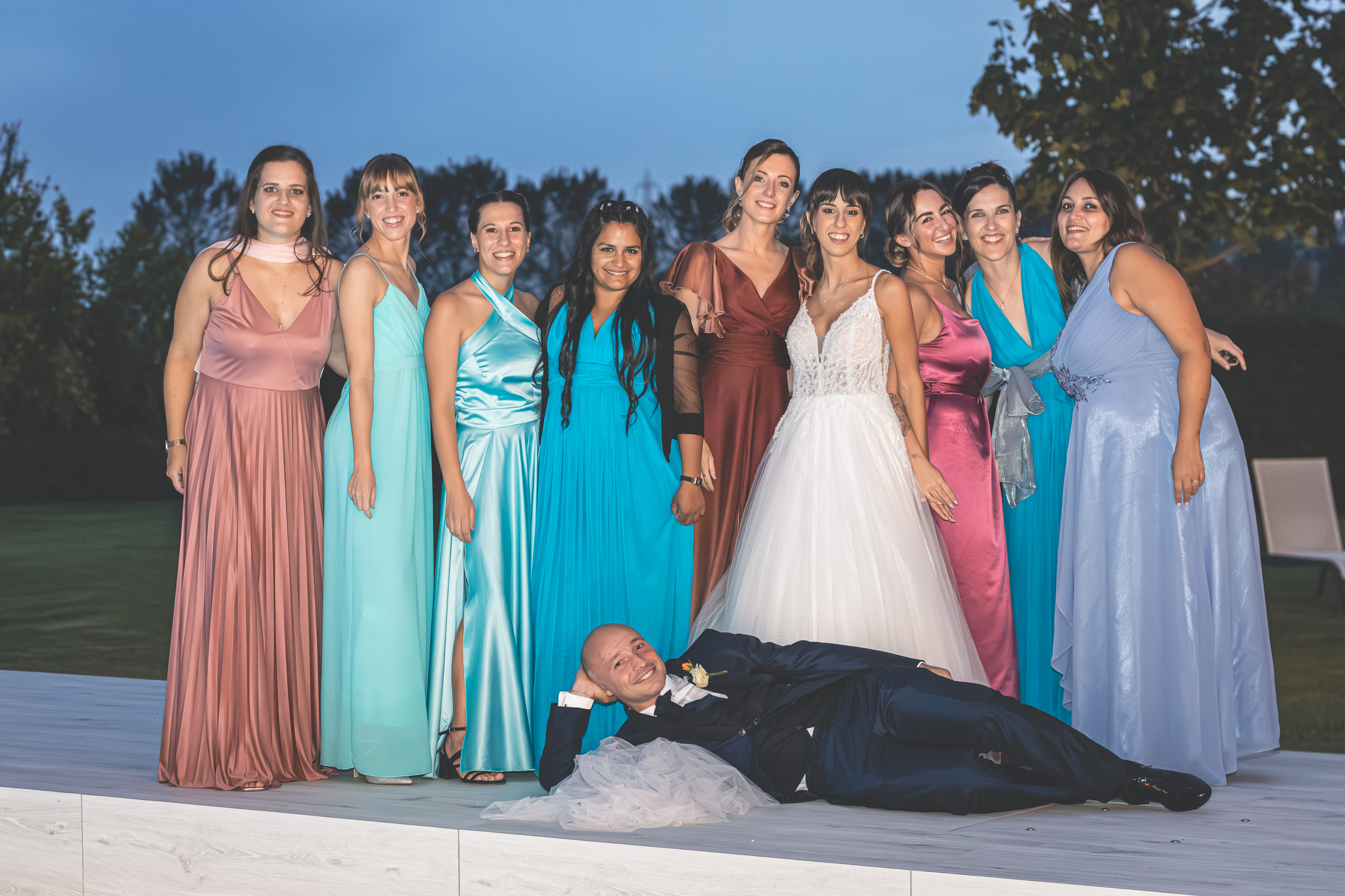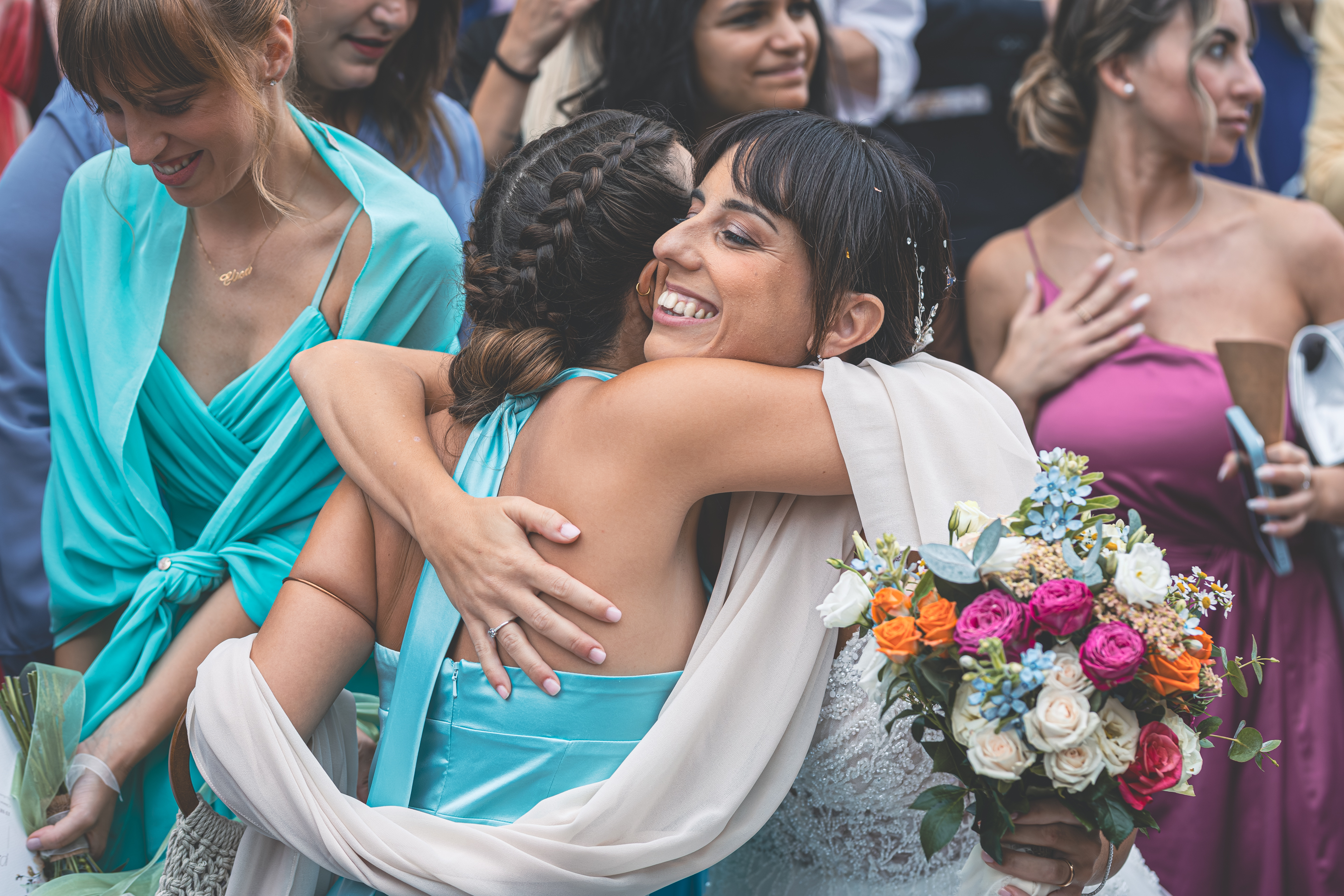 La cerimonia religiosa si svolge in paese, in una chiesa gremita e partecipe, impreziosita dagli allestimenti floreali di LB Fiori. All’uscita, baci, abbracci e la classica foto di gruppo sul sagrato. Prima di raggiungere gli invitati per l’aperitivo, ci fermiamo con gli Sposi a Villa Aurelia per un saluto alla nonna di Patrizia. Un momento delicato e sincero, che diventa anche occasione per qualche scatto di complicità nel parco. La festa prende vita poi al nostro arrivo all’Osteria di Cimbriolo, dove gli invitati hanno già iniziato a divertirsi tra buon cibo e la musica di DJonny.