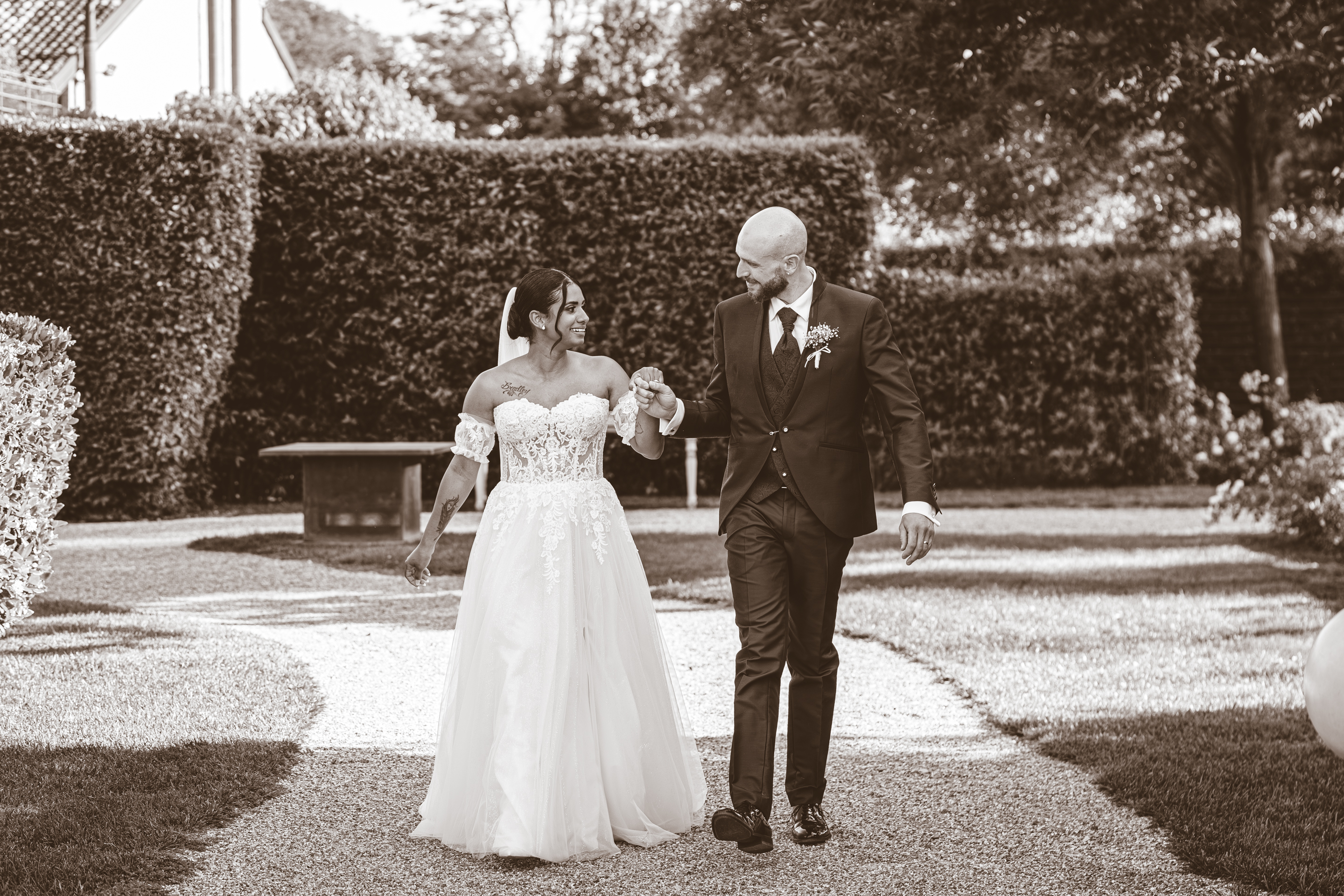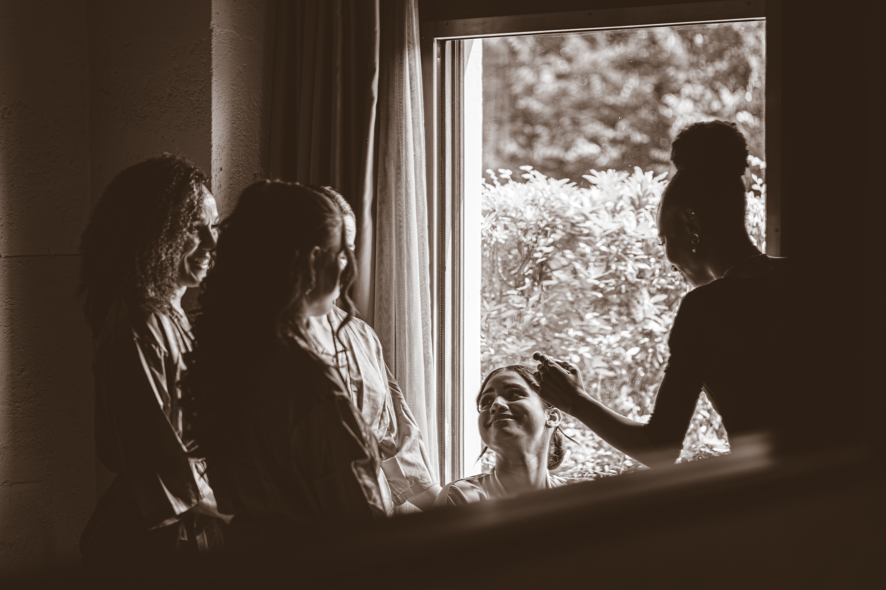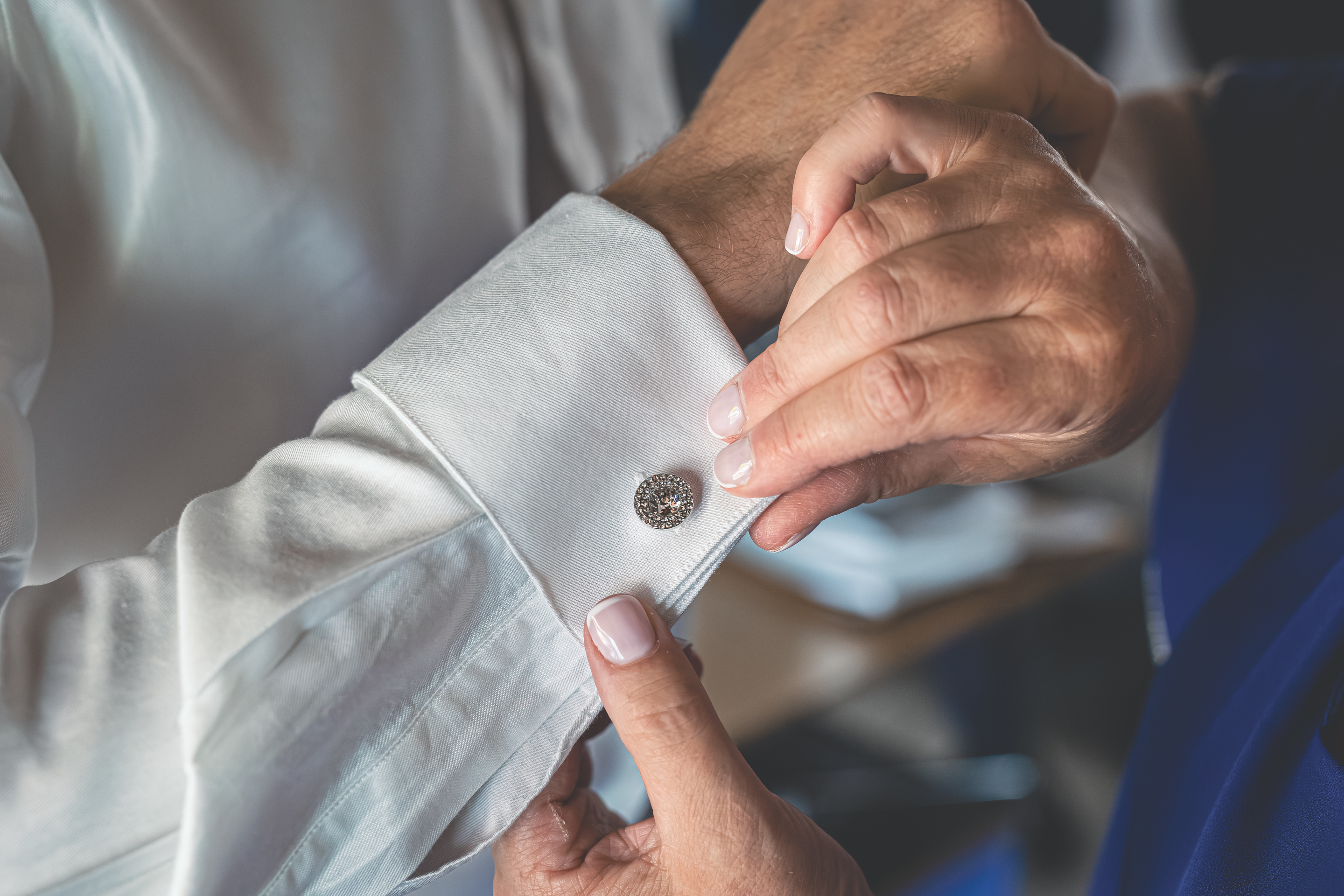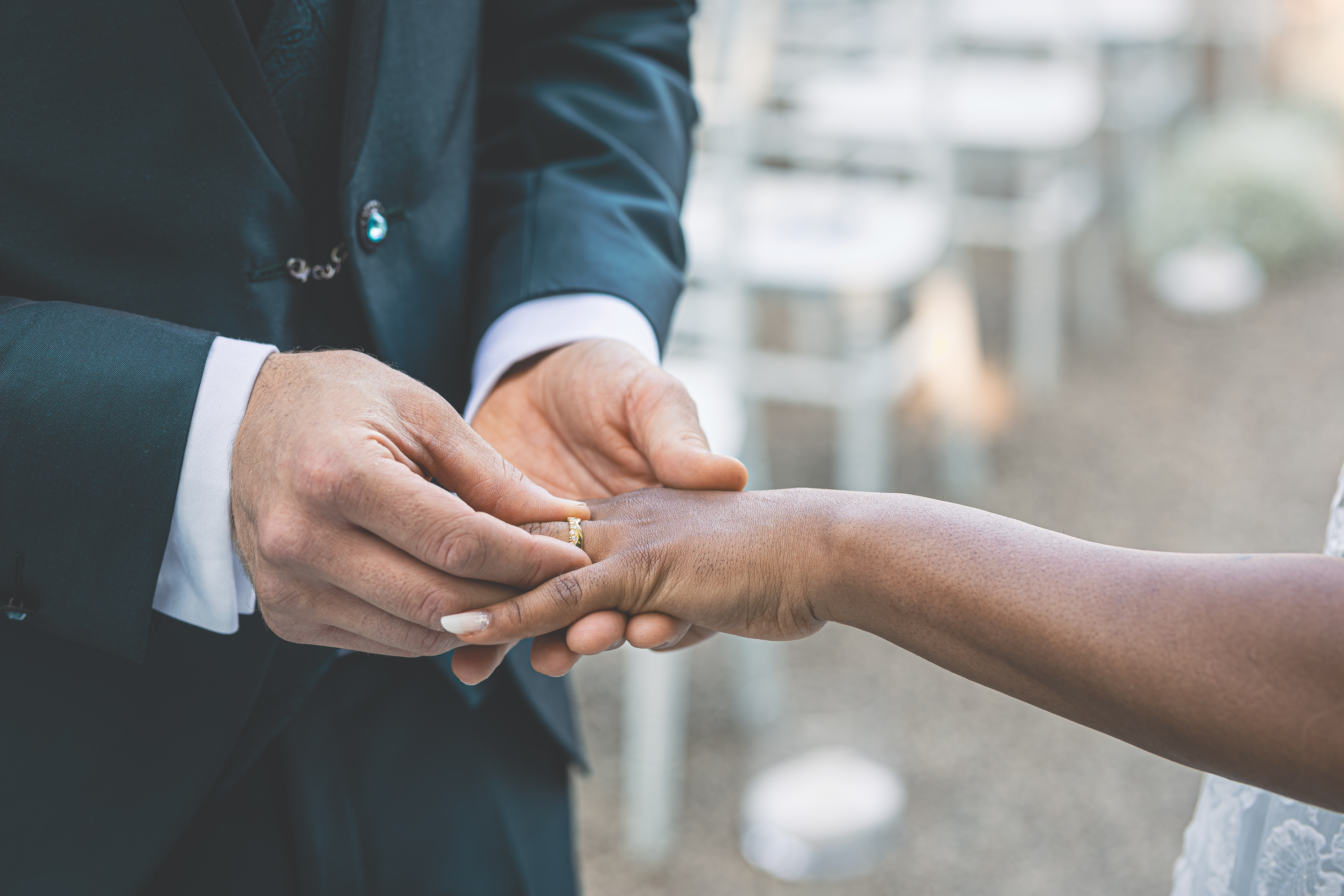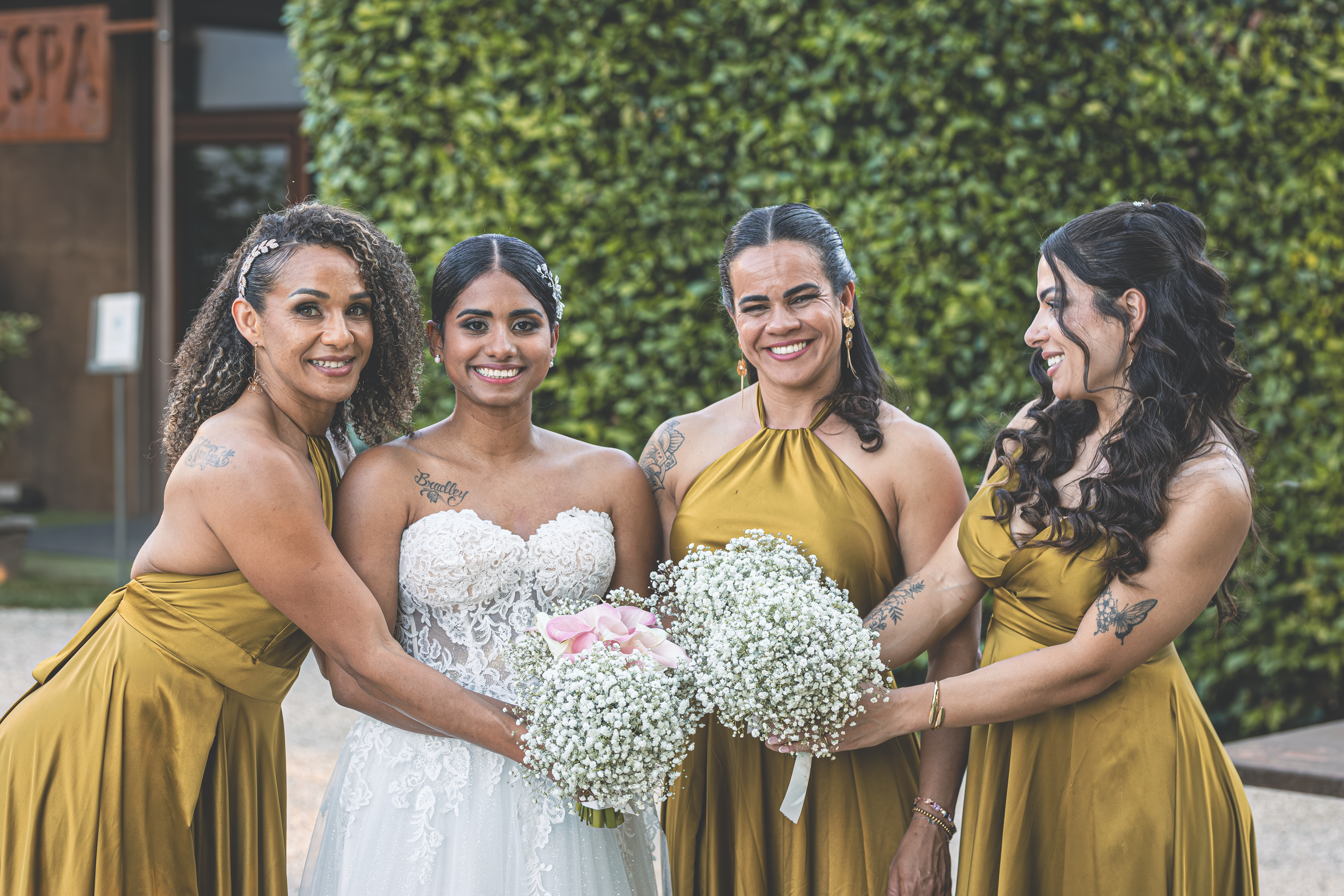 Il racconto comincia con Luca, che si prepara affiancato dalla sua famiglia, dal cugino testimone e da due presenze speciali: Bradley, figlio di Sharina, e il piccolo Marco, il loro bambino, che con il suo sorriso ha rapito gli sguardi di tutti. L’abito, firmato Sposi Domani, aggiunge eleganza a un momento pieno di dolcezza. Intanto, dall’altra parte del corridoio, Sharina si circonda delle sue tre damigelle. I preparativi scorrono tra sguardi complici, mani che aiutano, cuori che battono forte. Cavazzini Acconciature e Profumeria Douglas si prendono cura di lei, mentre indossa il suo primo abito – raffinato, luminoso – scelto da Sposi Domani.