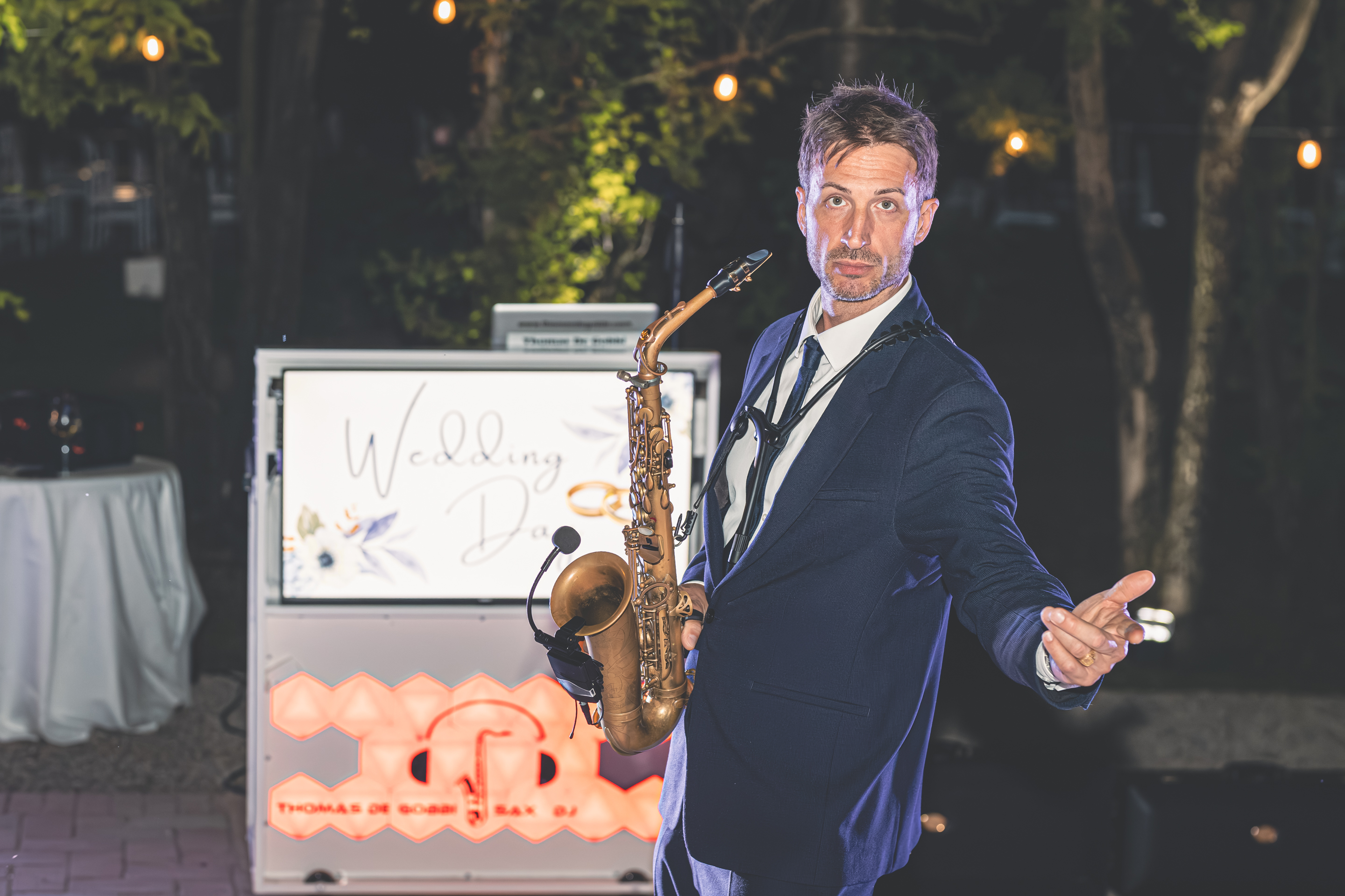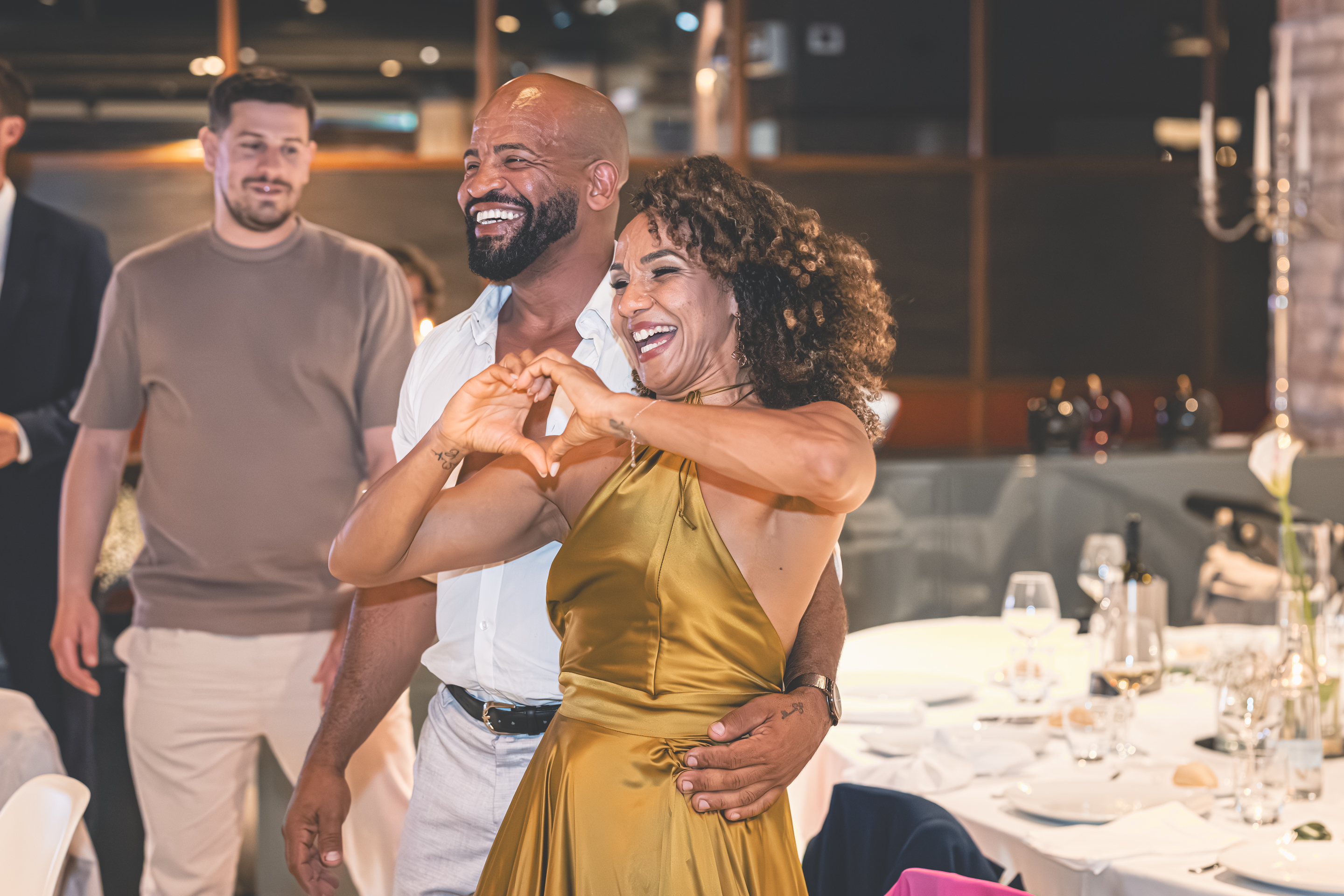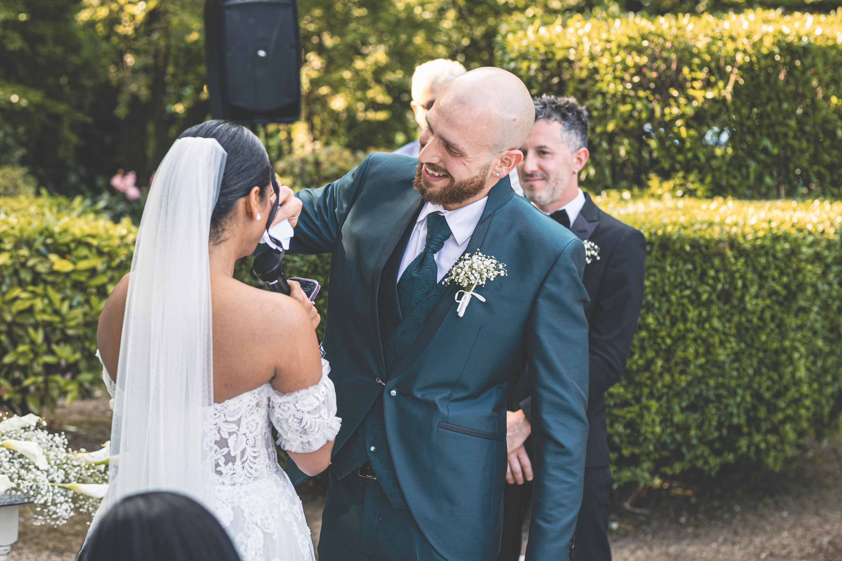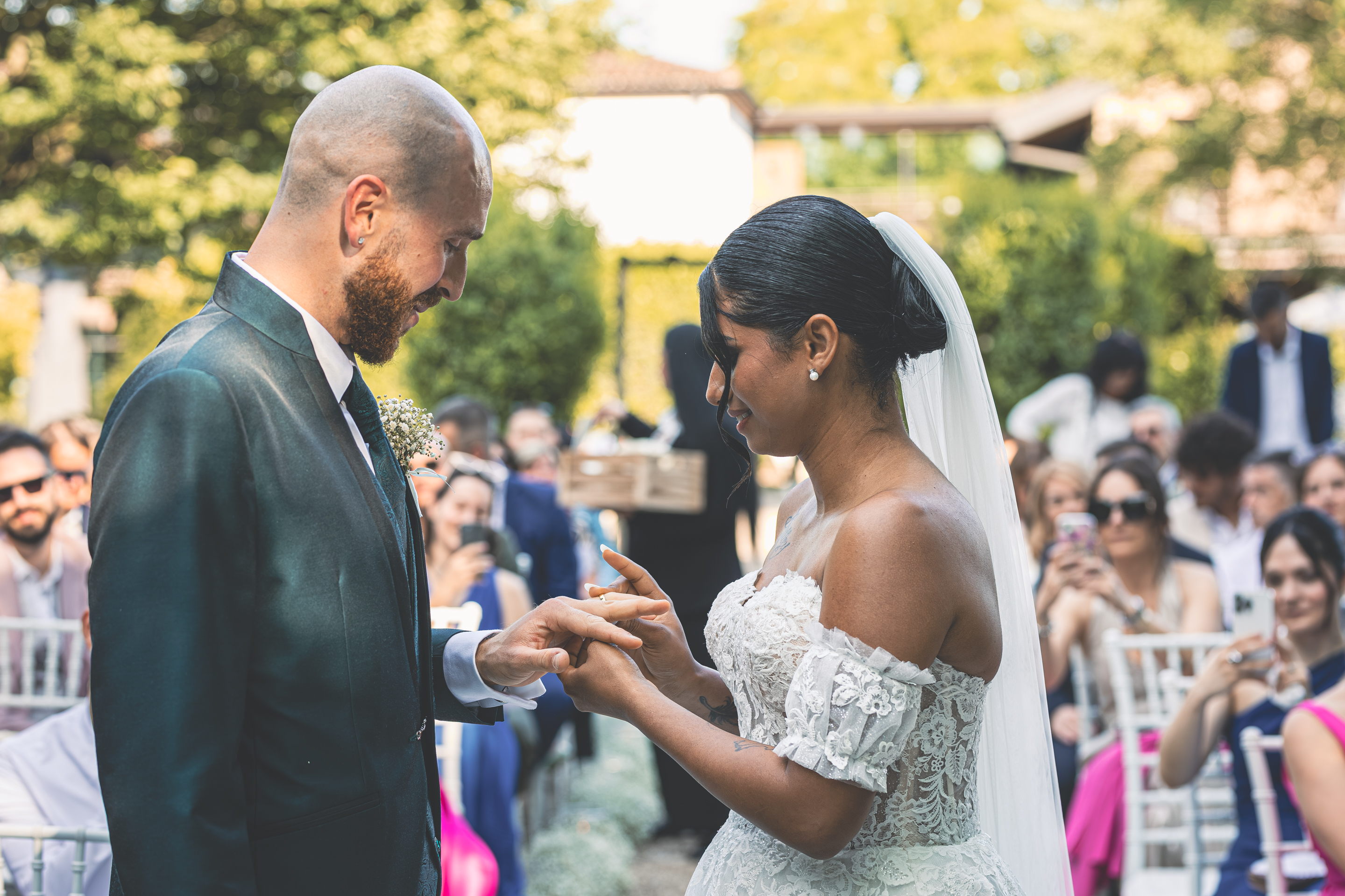Il rito nel giardino è un angolo di poesia: fiori curati da Rossella di Papaveri e Papere, il sole che accarezza gli sposi, lo scambio delle promesse che commuove e unisce. Le fedi di Alemar Gioielli brillano come simboli di un amore profondo, vissuto e condiviso. Poi esplode la festa: l’aperitivo è un vortice di musica, con il sax e il ritmo di Thomas De Gobbi, l’allegria dei bambini allietati da Gli Amici del Sorriso, e il tocco ironico de Le Caricature del Buffo, che strappano sorrisi sinceri.