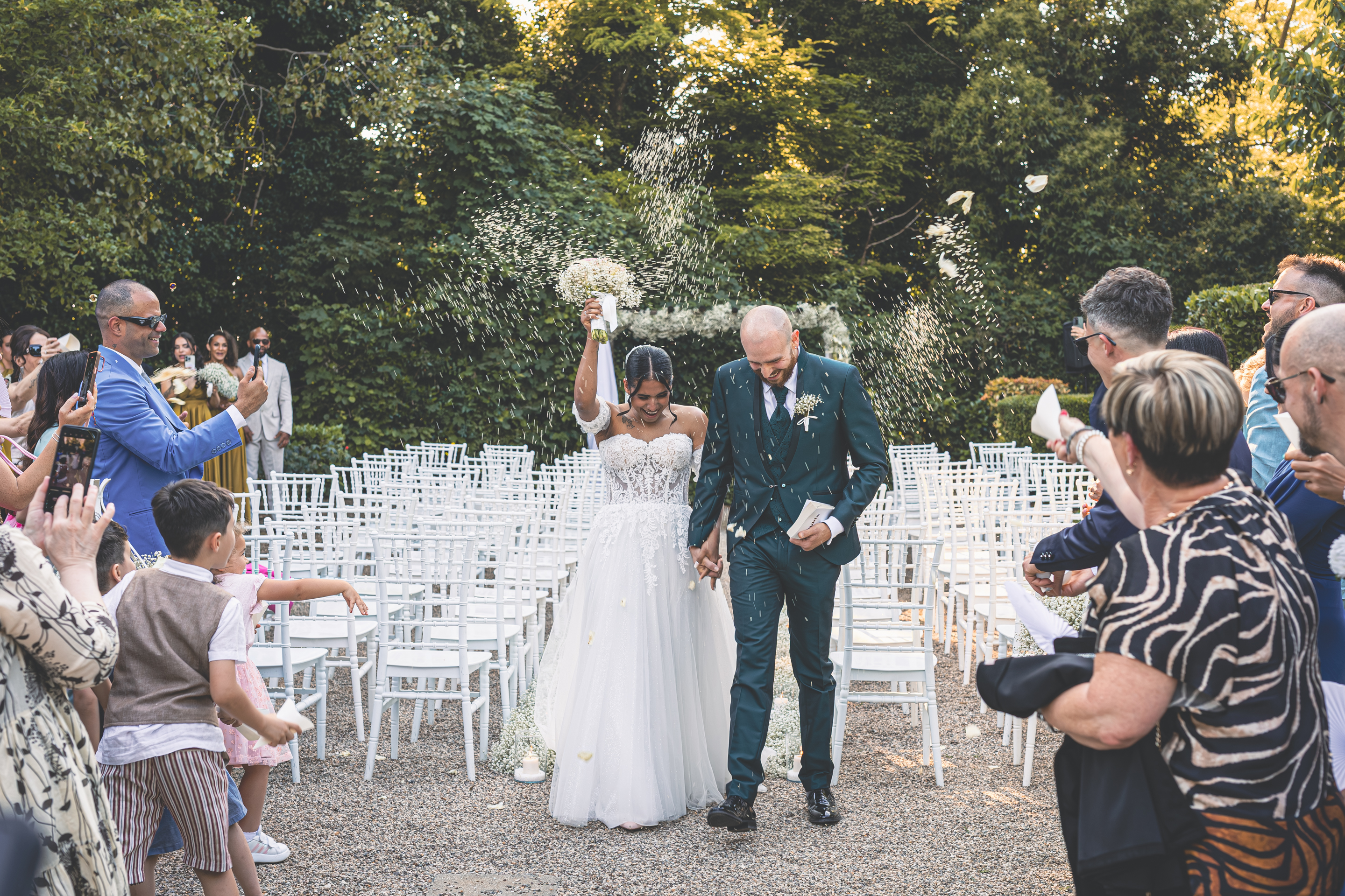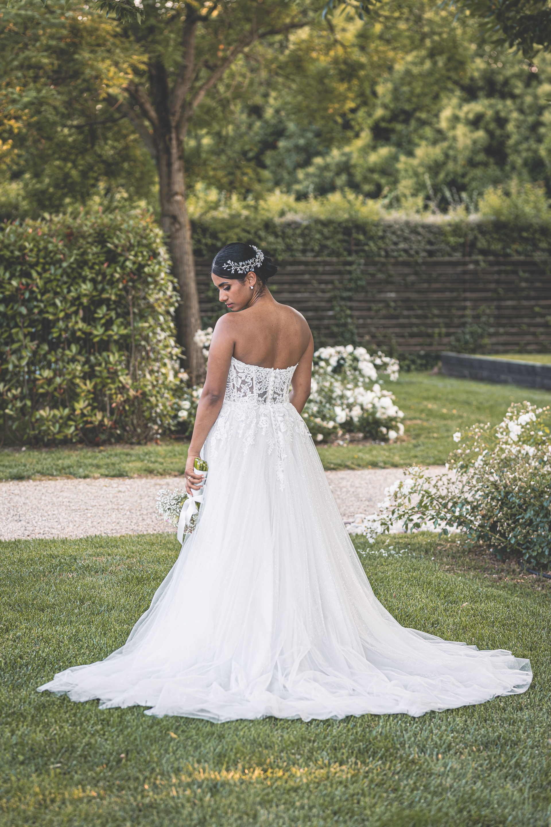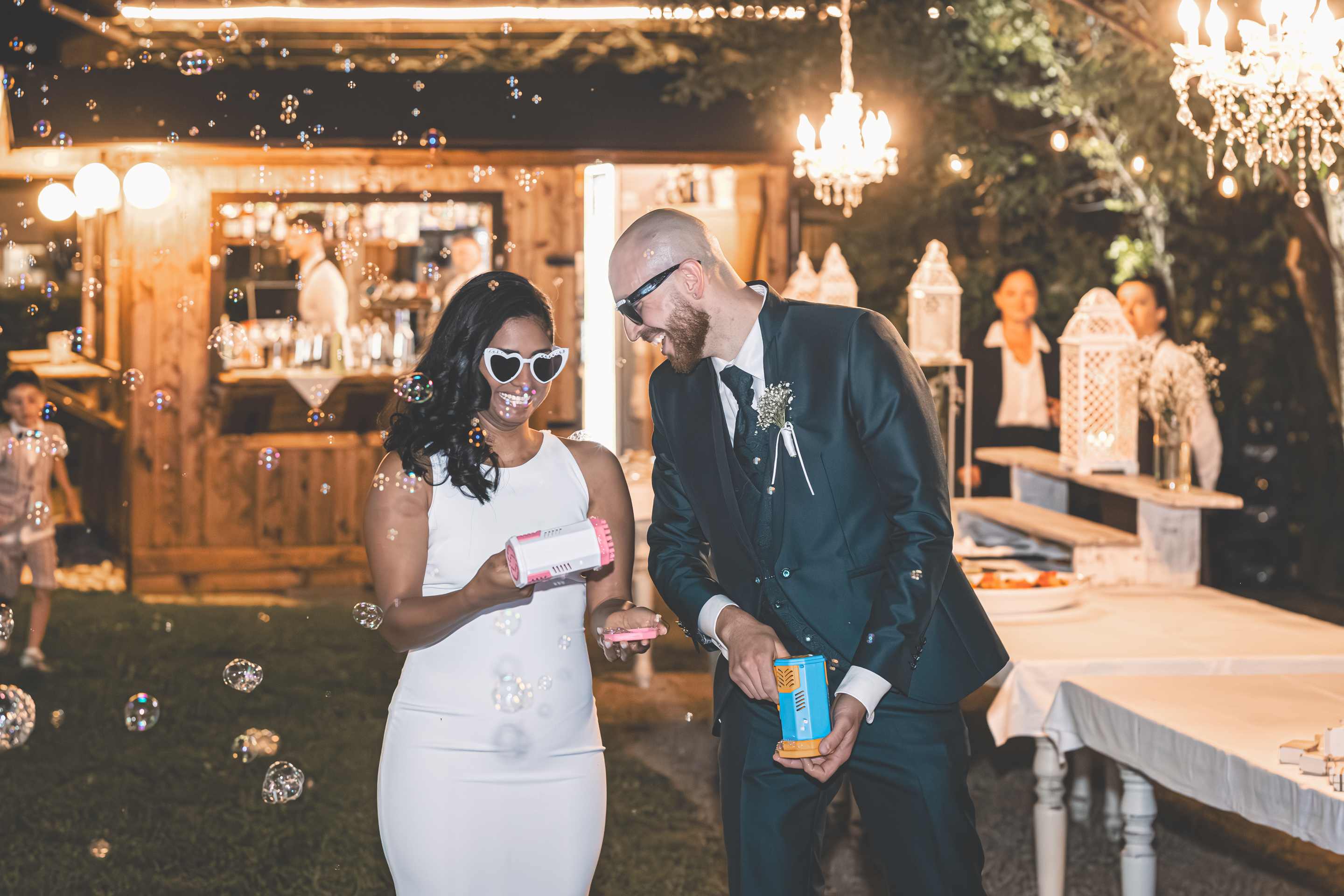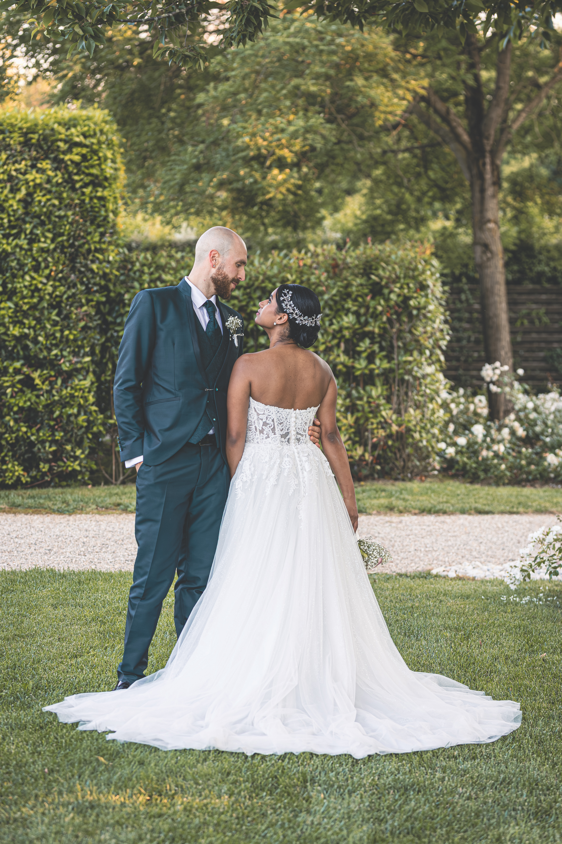 La cena si consuma tra brindisi e parole dolci. E quando scende la sera, il taglio della torta arriva tra fontane luminose e fuochi d’artificio curati da Signa Eventi, sotto un cielo che sembra festeggiare insieme a loro. Prima dei balli finali Sharina cambia abito, indossando un nuovo sogno firmato Come in una Favola. E a questo punto la festa può scatenarsi insieme ai tanti amici presenti, inframezzata dalla consegna – tra abbracci e baci – delle bomboniere di Giuliana Pinzi, piccoli sigilli di gratitudine.
